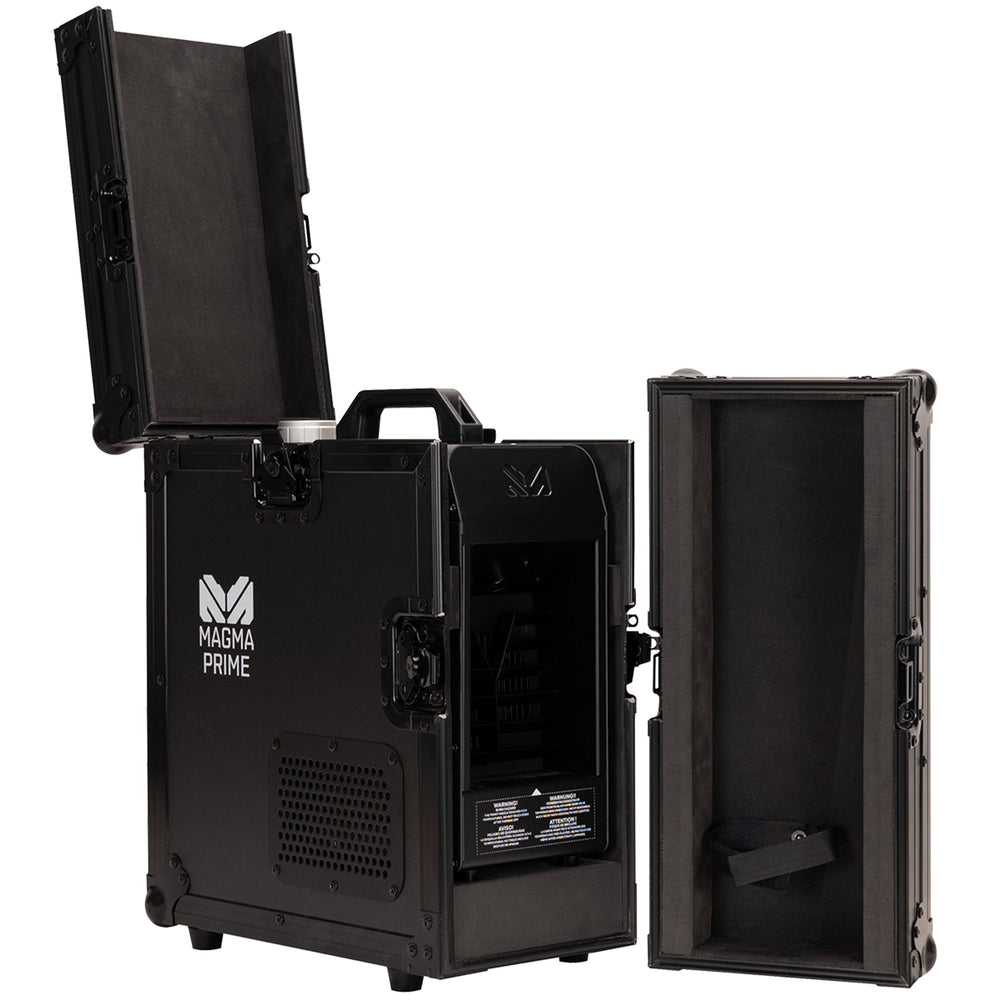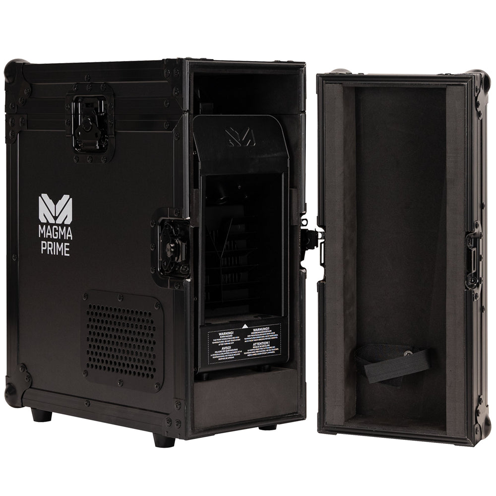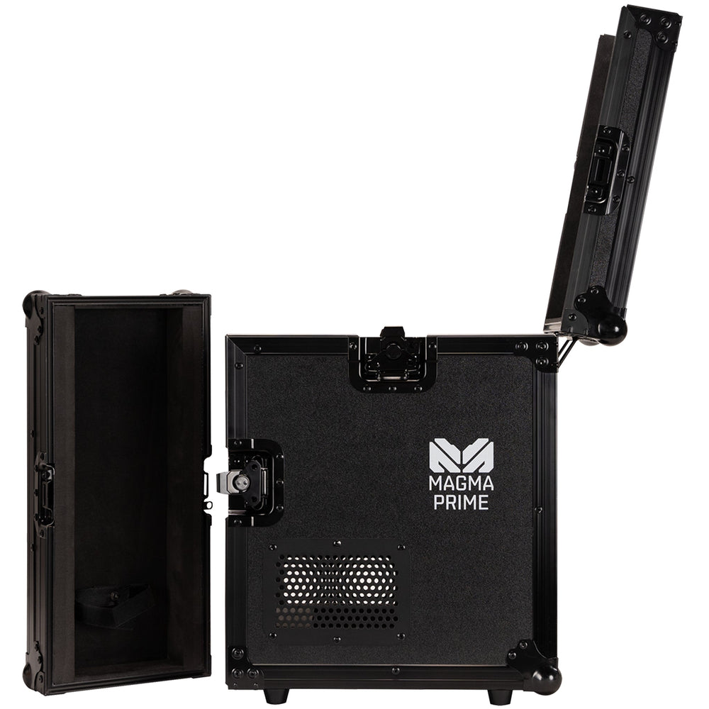 Built for the demands of mobile entertainment and production professionals, the Magma Prime FC incorporates multiple protective elements to withstand the rigors of frequent transport. The flight case's tongue and groove sealing extrusion creates an effective barrier against dust and moisture that could potentially damage your equipment, while reinforced corners provide critical protection against accidental drops and impacts. High-impact recessed spring latches ensure the case remains securely closed during transport, and the comfortable spring-loaded handle makes carrying effortless. The accessible rear compartment door enables quick connection of your Magma Prime hazer, and four durable rubber feet provide stable placement on various surfaces, from uneven outdoor terrain to smooth stage floors.