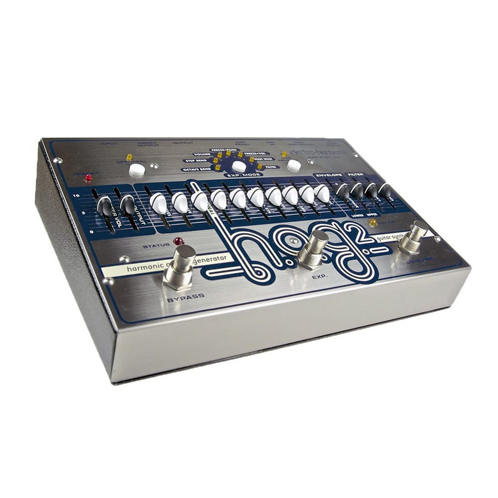 The EHX HOG2 is an Octave and Harmonic Generator/Guitar Synthesizer that can simultaneously generate multiple octaves and harmonics from your input signal. Whether you play single notes, arpeggios or full chords, the HOG2 will track every note you play. Built-in to the HOG2 are 7 Expression Modes that enable you to modify your sounds using a standard Expression Pedal, a MIDI Controller, or the Expression Button on the HOG2 itself. Further sound sculpting is achieved through an Amplitude Envelope Generator and a 2nd-Order Low Pass Resonant Filter.