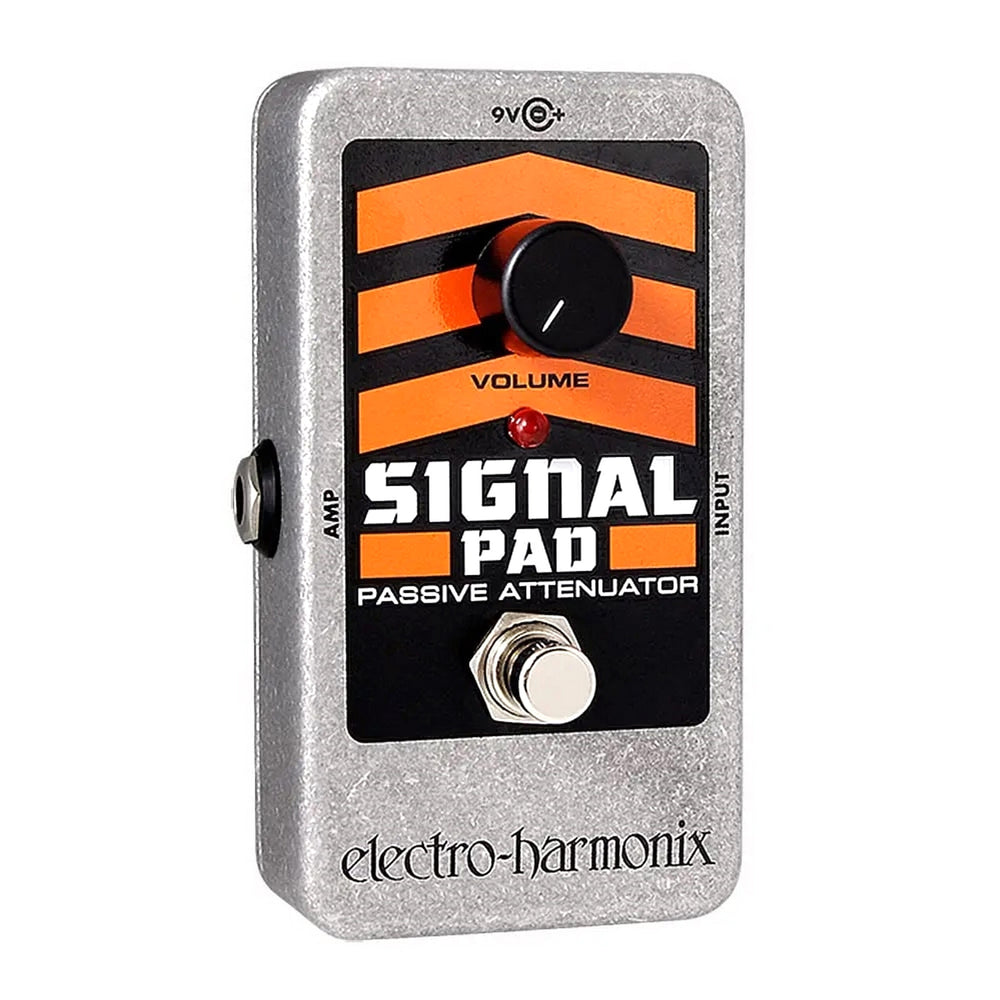 The EHX Signal Pad is a passive attenuator that allows you to instantly switch to a different preset volume. It's like your guitar's volume knob, with a fully-passive and color-free circuit. Leave your amp's volume set high for overdrive, and use the Signal Pad to lower your level for a clean sound -- then switch it off to kick in your amp's natural overdrive. You can also experiment with the Signal Pad anywhere in your effects chain -- you'll bring out new tonal combinations from your favorite old pedals.