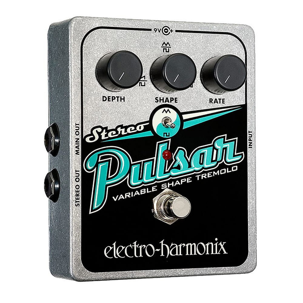 The EHX Stereo Pulsar Stereo Tap Tremolo generates vintage tremolo and panning that will fill any venue with rhythmic stereo energy. Its Wave Form switch allows you to change the modulation from triangle to square form. The Wave Shape control allows you to control transitions from negative to positive saw tooth or adjust pulse width. This all means you can create any type of stereo tremolo from pure vintage to ones never heard before.