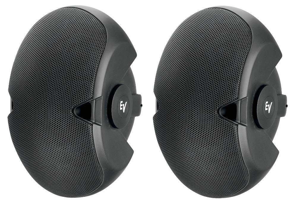 The Electro-Voice EVID6.2 Dual 6-Inch Two-Way Surface-Mount Loudspeaker | Black - Pair is an extended-range loudspeaker ideal for indoor and outdoor applications requiring high-quality sound. Its extended range and smooth bass provide ample SPL levels in larger environments such as shopping malls, sports bars, health clubs, and so on. The 6.2’s three-dimensional elliptic baffle symmetrically locates the 1” Ti direct radiator high-frequency element with a Coherent Coverage Waveguide in front of and between the 6” low-frequency drivers. The careful shaping, location, and 10° splaying of the LF units provide coverage control by the resulting line array. EVID’s mounting system provides greater range of aiming angles in both horizontal and vertical planes than other types. The curved grille features designed-in weather resistance and a hidden leash for safety.
