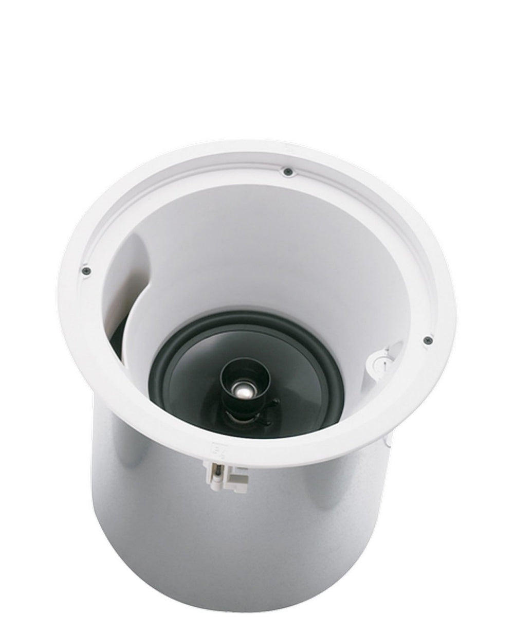 The Electro-Voice EVIDC8.2HC 8-Inch Enhanced Pattern-Control Two-Way Coaxial Ceiling Loudspeaker - Pair is an 8" coaxial transducer featuring an innovative waveguide (patent pending) that provides directivity control to 1 kHz. It provides much better music fidelity and speech intelligibility in spaces with high ceiling heights than typical flush units are capable of. Its 75° coverage pattern provides the same coverage area when used in a 21’ ceiling as a typical flush mount mounted unit in an 8’ ceiling. This loudspeaker system is a complete two-way ceiling loudspeaker package. The package consists of a bezel/waveguide assembly, grille, rear enclosure, 8-inch coax two-way loudspeaker with waveguide coupled titanium coated dome tweeter and internal line-matching transformer. The C8.2HC utilizes a transformer that offers a selection of 7.5 (70-V only), 15, 30 or 60 watts delivered to the loudspeaker system using either 70-V or 100-V lines, or 8-ohm bypass. Selection is via a convenient switch on the front of the waveguide. The perforated grille is finished in semi-gloss white powder-coated enamel. The baffle and bezel are constructed from UL 94V-0 rated ABS. The rear enclosure, with fiberglass damping material, provides an optimum internal volume for extended low frequency performance. A rear cover, with provisions for a junction box fitting, provides access to a 4-pin terminal block that allows direct connection to the speaker with 12 gauge wire and provides pass through to additional speakers. A tile bridge is included for safe suspension of the C8.2HC ceiling system in a drop ceiling that uses mineral wool, or other fiber based ceiling tiles. The EVID line of ceiling speakers has been designed to work together as a complete system in a wide range of different ceiling constructions. They provide controlled dispersion, high-efficiency, high-maximum output, ease of installation, and wide-range reproduction of music or voice.