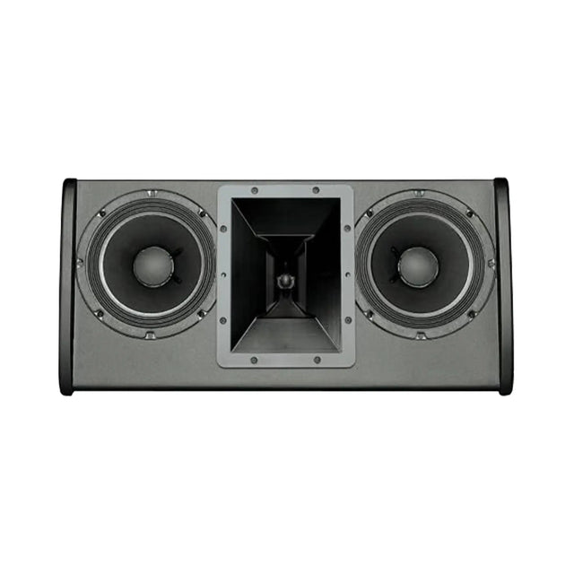 The Electro-Voice FRI28LPM Dual 8-Inch Two-Way Full-Range Loudspeaker | Black is a two-way full-range passive system in a unique slant-sided enclosure, designed to complement the FRi line of loudspeakers. It is particularly useful in stadiums, arenas, houses of worship, dance clubs, live music venues, gymnasiums, etc. The FRI28LPMincludes dual 8-inch woofers, a 1” (25 mm) voice coil compression driver on a 100º x 100º constant-directivity horn, and a cloth coverable steel grille. The FRI28LPMuses EV’s exclusive RMD™ (Ring-Mode Decoupling) to provide outstanding vocal clarity and intelligibility in a cost-effective two-way system. The versatile, compact enclosure features a low profile cabinet design with integral suspension points to allow horizontal or vertical mounting. The 100º x 100º horn pattern allows broad coverage for near field applications.