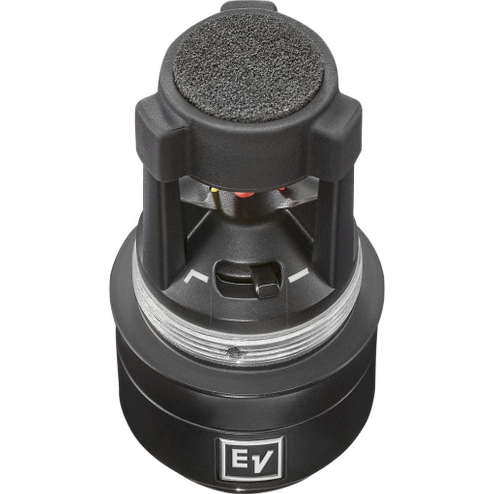This microphone head electrically and mechanically adapts to Electro-Voice (and many other brands) wireless handheld transmitters that use the common 3-contact rings, 1.25” diameter by 28-thread pitch coupling convention. The floating captured ID collar will spin freely until screwing the head on tightly. It will remain locked in place when fully tightened. This allows the desired orientation of the branding to the transmitter.