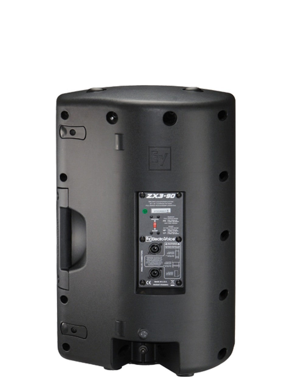 The Electro-Voice ZX360PI 12-Inch Two-Way Passive Loudspeaker Permanent Installation | Black is a 2-way P.A. passive loudspeaker with a 600-watt continuous power handling capacity and a 60x60° coverage angle, for long-throw and cluster applications. The high-tech, high-impact polypropylene enclosure houses a 12" woofer and a 1" Neodymium compression driver with a large 2" voice-coil. The ZX3-60PI cabinet is equipped with 10 integral suspension points for permanent suspension or bracketing, and 3 Anchor Plates for single-stud fittings, with an additional pair of Anchor Plate attachment points on the bottom of the speaker.