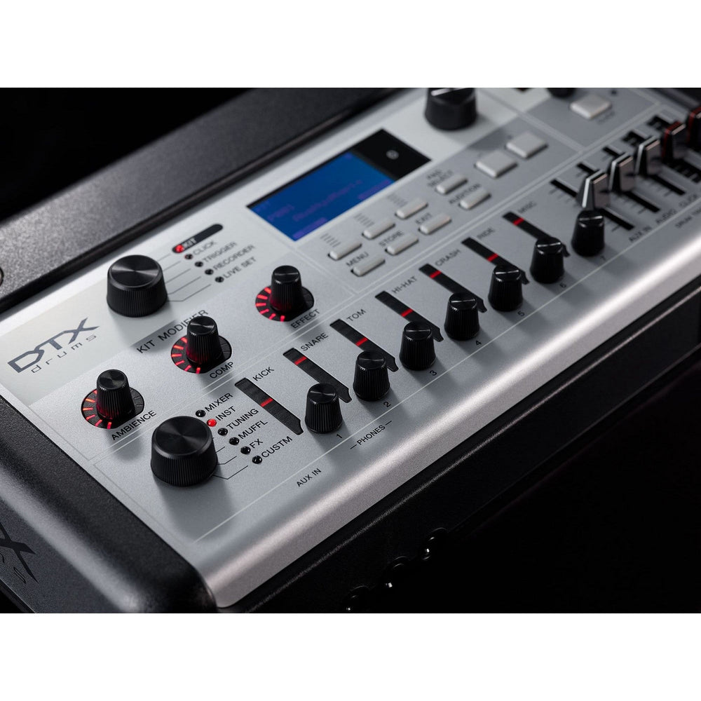Beyond its sonic prowess, the DTX-PROX empowers drummers with unprecedented control over their sound. The innovative KIT MODIFIER knobs offer a dynamic and intuitive approach to sound sculpting. With a simple turn, drummers can effortlessly transform their kit from natural to heavily processed, unlocking a vast array of sonic possibilities. Complementing the KIT MODIFIER knobs are the precision-oriented LED rotary faders, which allow for fine-tuning of individual instruments. This combination of intuitive controls enables drummers to craft highly personalized and expressive drum kits tailored to their unique musical vision.