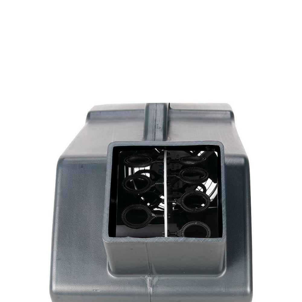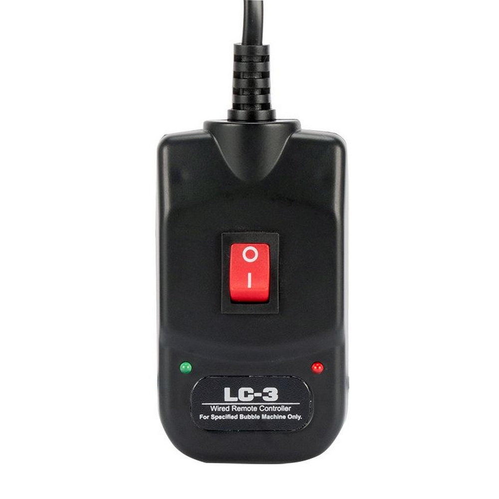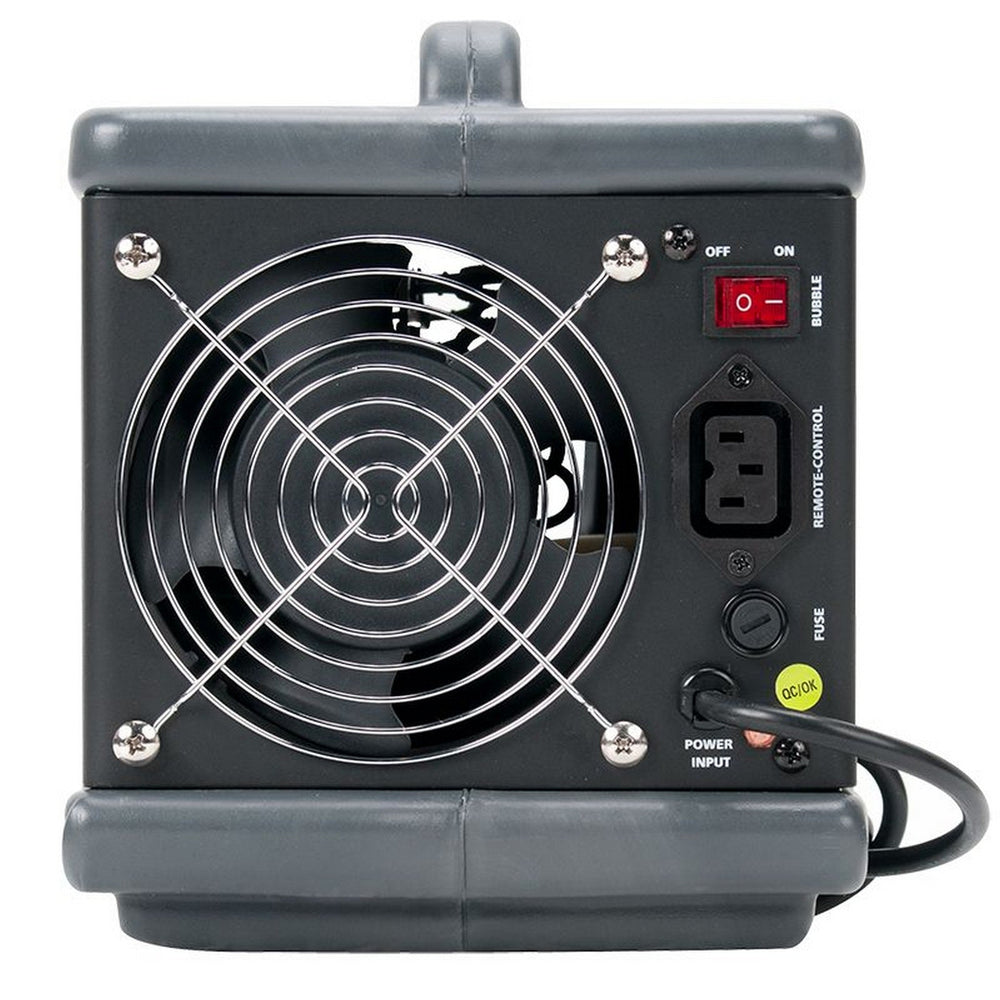 Featuring a user-friendly ON/OFF switch at the back and a handy wired remote with a 25 ft. cable, operation is a breeze. Its sturdy plastic housing, large high-velocity fan, and convenient handle make it a reliable companion. Compatible with most bubble solutions, it consumes minimal power (24W) and uses 1 liter of fluid every two hours (120V: 20 ml/min, 230V: 11 ml/min).