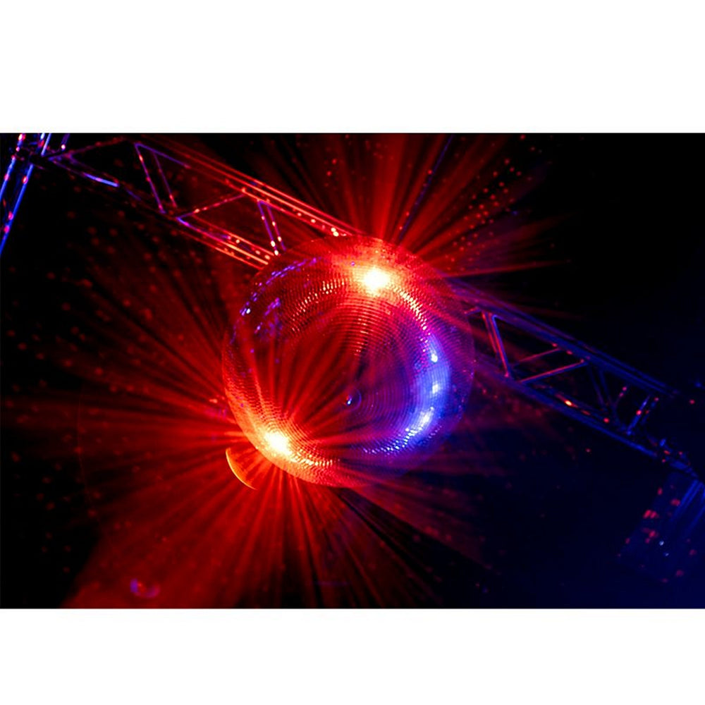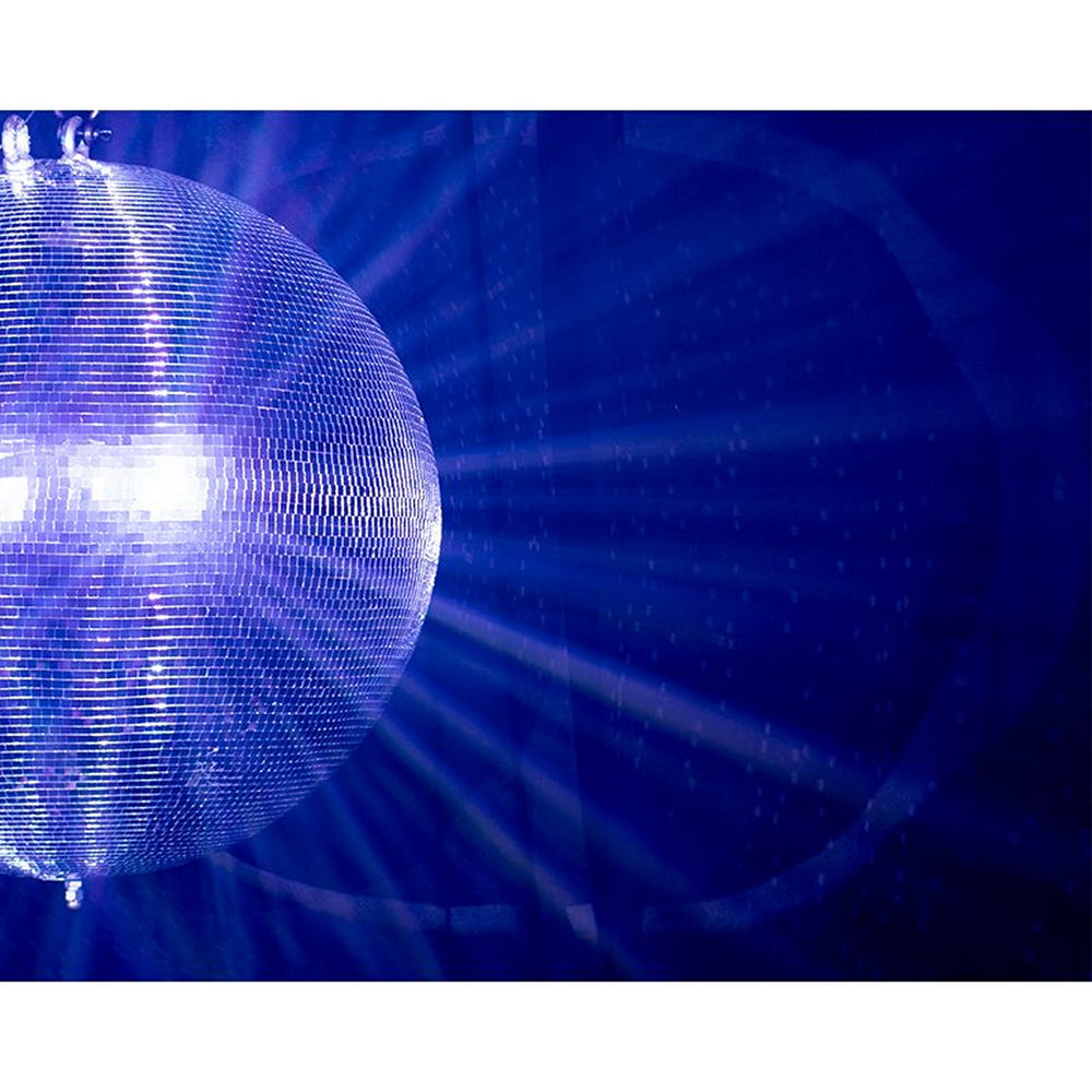 Equipped with two secure safety hooks, the EM30 ensures stable and reliable hanging. Weighing in at a substantial 39 pounds, the installation of the heavy-duty pro mirror ball motor, Eliminator Lighting HD-MB40, is highly recommended to ensure secure support. With its abundance of 10x10mm reflective mini panels and sprawling 30-inch diameter, the EM30 casts a stunning array of light onto any dance floor, creating an enchanting tapestry of colors that dance in rhythm with the music.