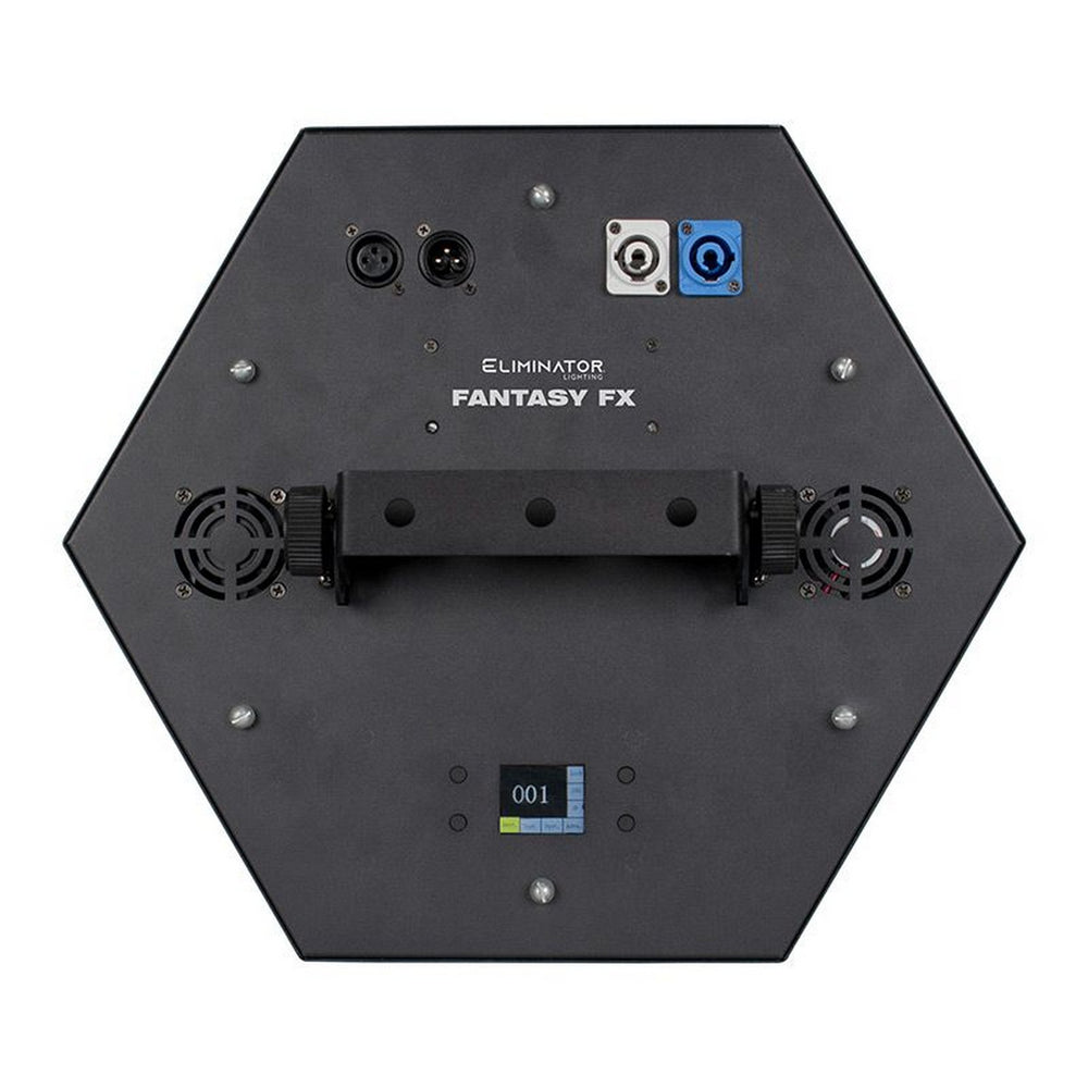 The Fantasy FX features smooth 0–100% dimming capabilities and a shutter function capable of producing strobe effects with up to 20 flashes per second, enabling precise control over the lighting ambiance. Its convection-cooled design ensures silent operation, making it ideal for environments where noise is a concern. The fixture's compact dimensions (15" x 15" x 2.25") and lightweight construction (7 lbs) facilitate easy installation and transport.