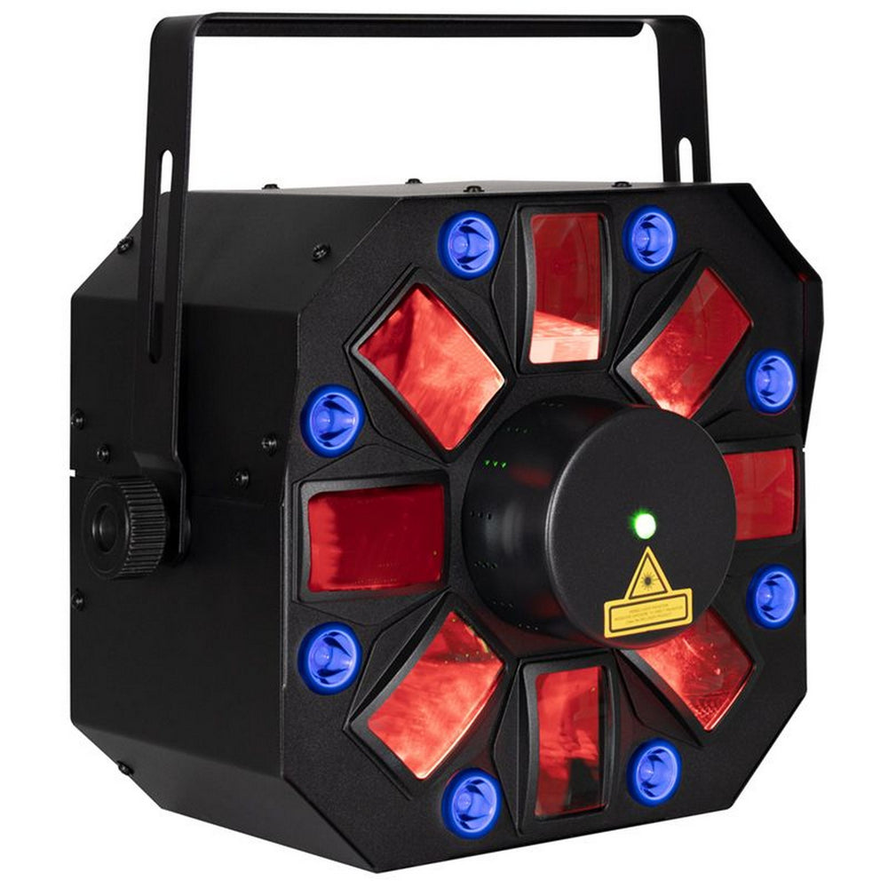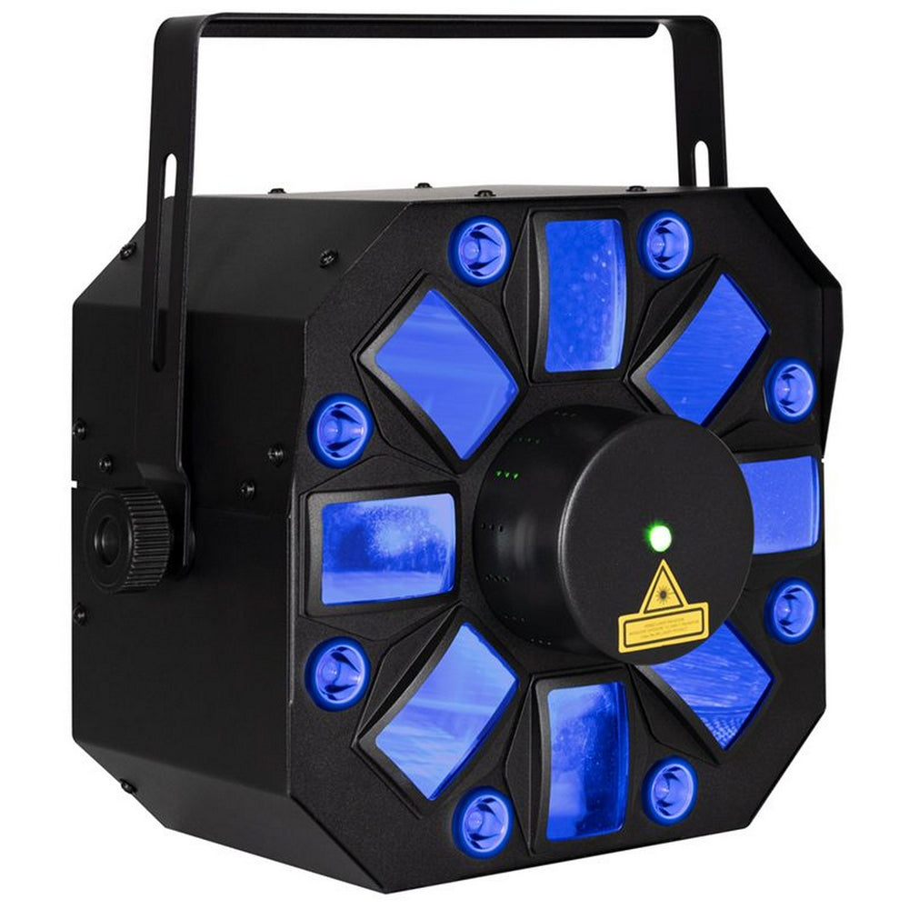 - 3-in-1 lighting effect: Moonflower, Wash, and Laser effects combined in one fixture.