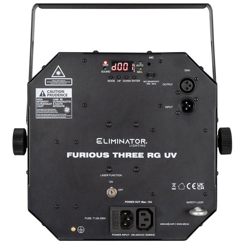 The Eliminator Lighting Furious Three RG UV is a dynamic 3-in-1 lighting fixture that seamlessly integrates Moonflower, Wash, and Laser effects into a single compact unit. This versatile fixture is designed to fill any venue with vibrant colors and razor-sharp beams, creating an electrifying atmosphere that captivates audiences. Whether you're a mobile DJ, event organizer, or venue owner, the Furious Three RG UV offers a comprehensive lighting solution that enhances any event's visual appeal.