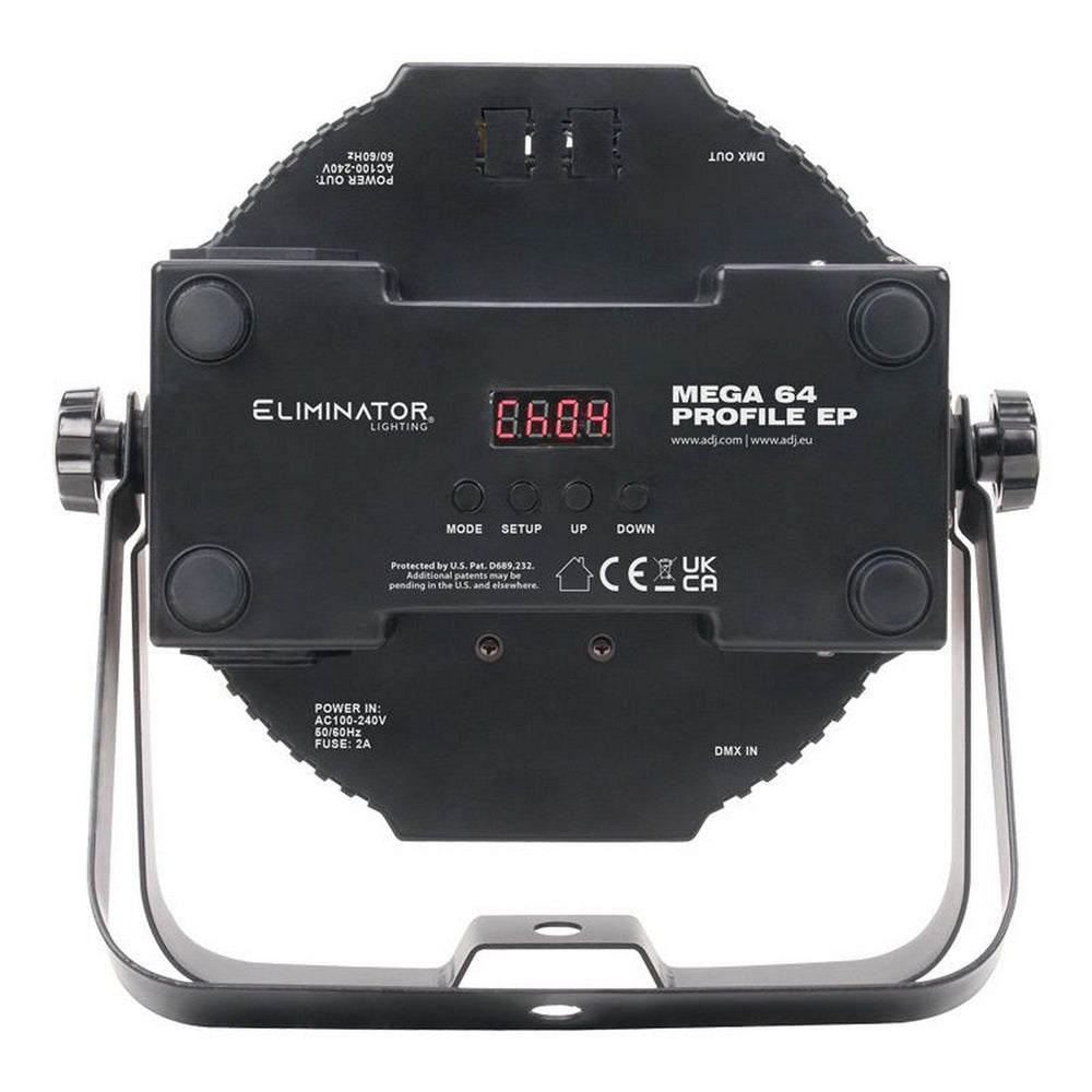 The Eliminator Lighting Mega 64 Profile EP LED Par with Wired Digital Communication Network ensures seamless color blending without RGB+UV shadows, boasts a 25-degree beam angle, and supports 5 DMX Channel modes for diverse programming possibilities. Users can further enhance control by utilizing the separately available ADJ LED RC2 wireless remote to manage the Mega 64 Profile EP.