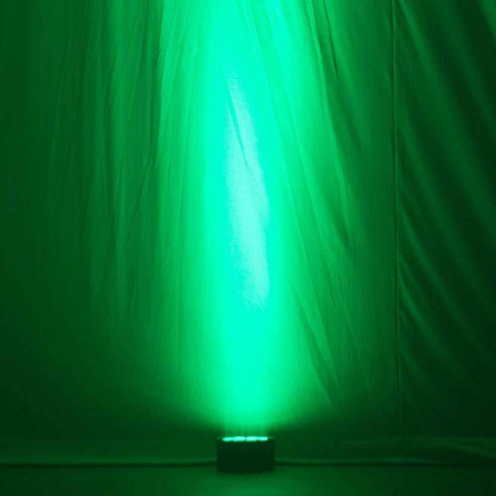 The Eliminator Lighting Mega 64 Profile EP LED Par with Wired Digital Communication Network is a compact LED wash fixture with a low profile, ideal for uplighting, stage lighting, and wall washing. It enhances color and dynamism for smaller events or intimate stage performances. Featuring twelve powerful 4-Watt Quad (RGB+UV 4-In-1) LEDs, this fixture offers a broader color spectrum, especially with the inclusion of UV LEDs alongside the traditional RGB lights.