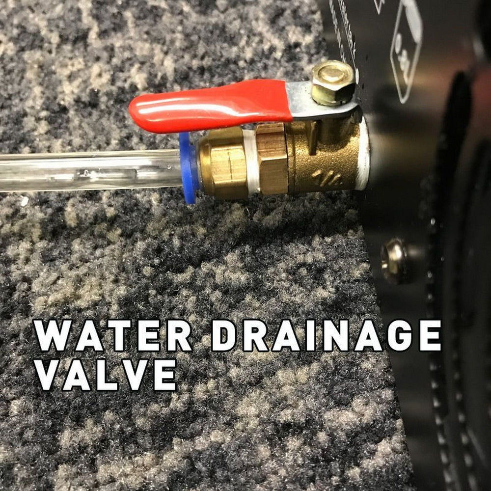 Water drainage valve system allows for easy clean-up. Water drains directly into the provided plastic bag.