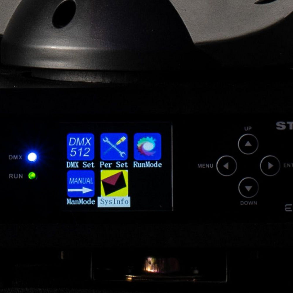 The Stryker Wash has motorized focus, variable strobe speeds, a 3-zone control mode with macros, and a large color display that makes navigation of the fixture’s menu system for setup and DMX addressing very easy. The fixture has fast, precise pan and tilt movements, along with fine pan/tilt, allowing for precision performance.