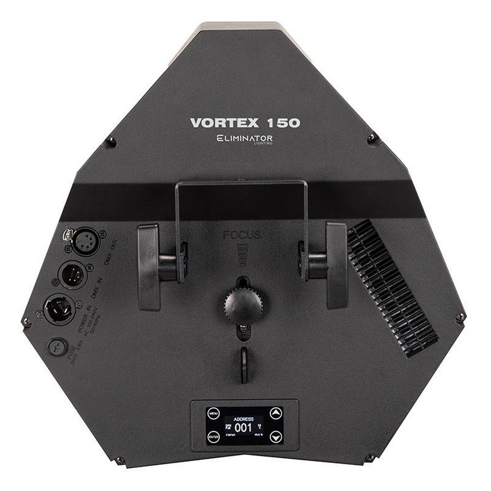 Designed for reliability and ease of use, the Vortex 150 features a sturdy construction and includes an adjustable angle hanging bracket for flexible installation. Its power-efficient design, with a maximum consumption of just 195W at 120V, makes it a sustainable choice for lighting professionals. With CE and cETLus certifications (pending) and an IP20 rating, this fixture is built to perform in a wide range of environments, delivering impressive effects with unmatched precision and reliability.