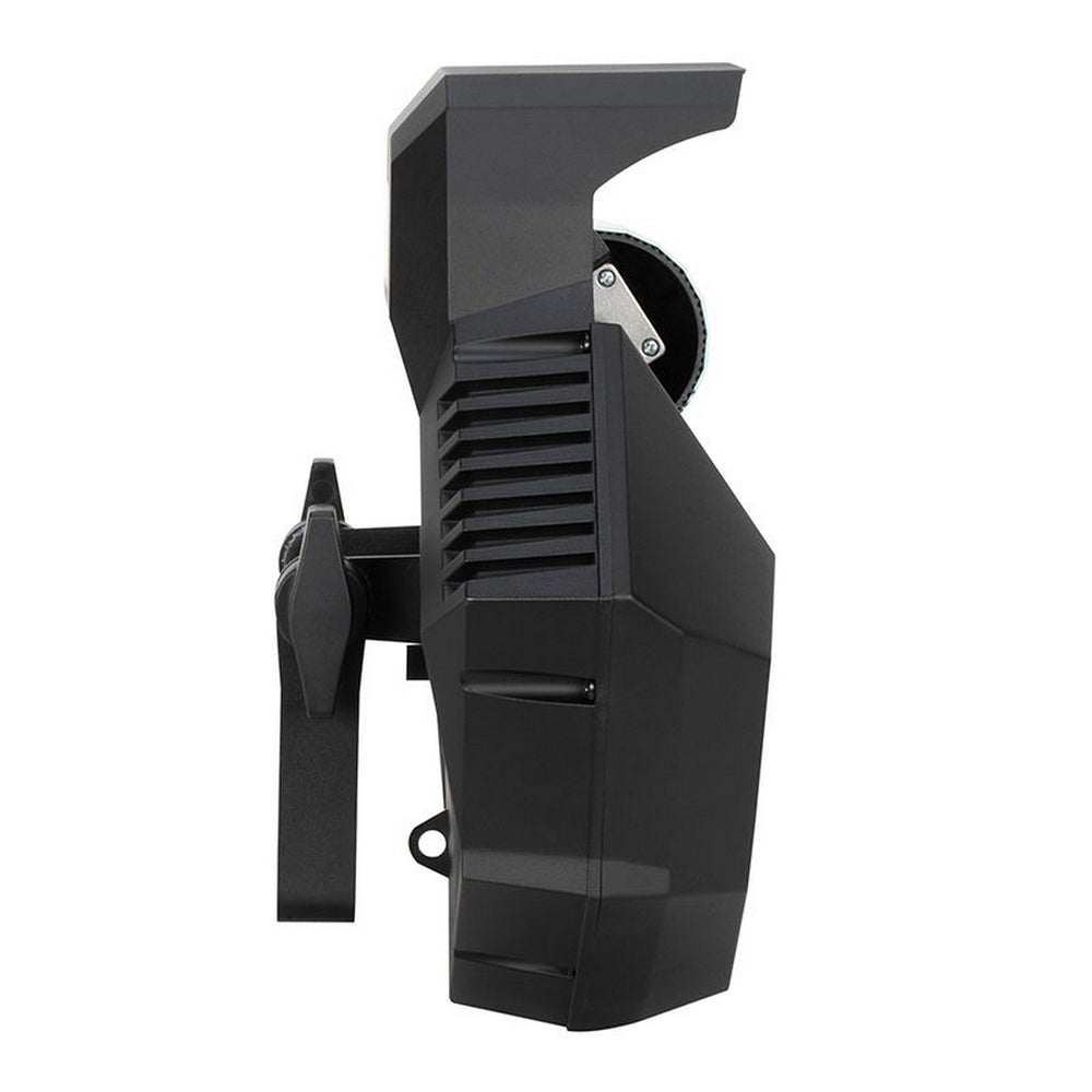 The Vortex may be controlled by DMX, Remote Device Management (RDM), sound activation or in show mode from a 4-buttom control menu with a digital display. The quick barrel movements run 180-degrees on the X-axis and 260-degrees on the Y-axis. The beams may be focused from manual focusing knob.
