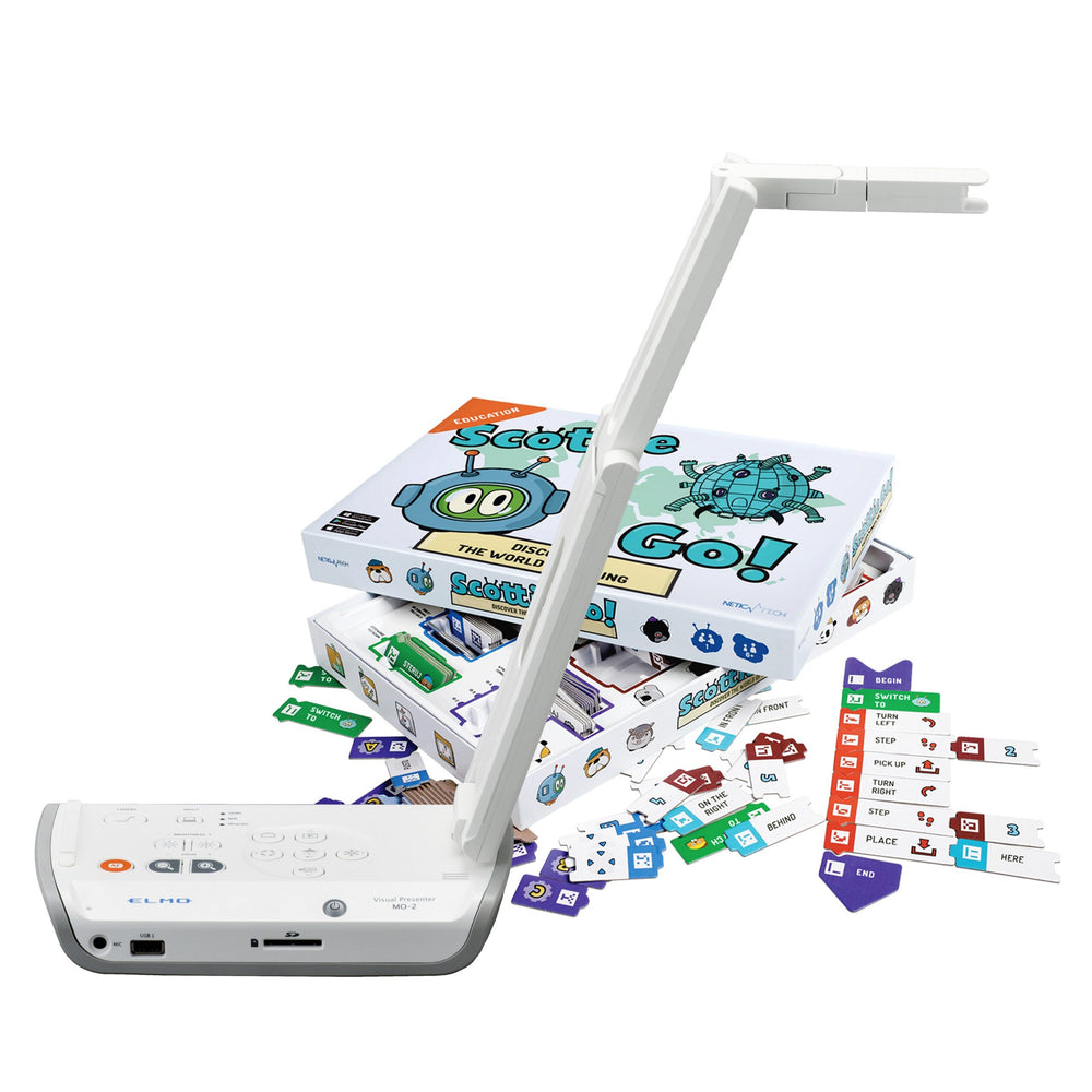 The Elmo MO-2 Scottie Go! EDU Bundle transforms the classroom experience by creating a vibrant and engaging environment for teaching coding fundamentals. This innovative learning tool captures students' attention and fosters a love for STEM (Science, Technology, Engineering, and Mathematics) education. With its intuitive design, the MO-2 STEM-CAM opens a myriad of possibilities for students from kindergarten to 12th grade, enhancing their learning through interactive play and hands-on experiences.Android-based technology empowers teachers and students alike. As the first Android-based document camera of its kind, the MO-2 provides educators the flexibility to browse the web and utilize educational applications over either a Wi-Fi or wired network connection. This feature not only aids in lesson preparation but also enriches classroom activities with an extensive range of digital resources.Wireless display capabilities redefine teacher-student interaction. The built-in Miracast functionality allows for seamless wireless connectivity, enabling educators to display content from their devices directly onto the classroom screen. This ability fosters a collaborative learning environment where teachers can move freely around the room, closely engaging with students and addressing their questions in real-time.With a portable design supported by a built-in battery, the MO-2 is perfect for dynamic teaching. Teachers no longer need to be tethered to their desks to effectively convey lessons. Whether in small group sessions or addressing the entire class, the MO-2 ensures a fluid teaching experience that keeps every student involved and attentive.Key Features