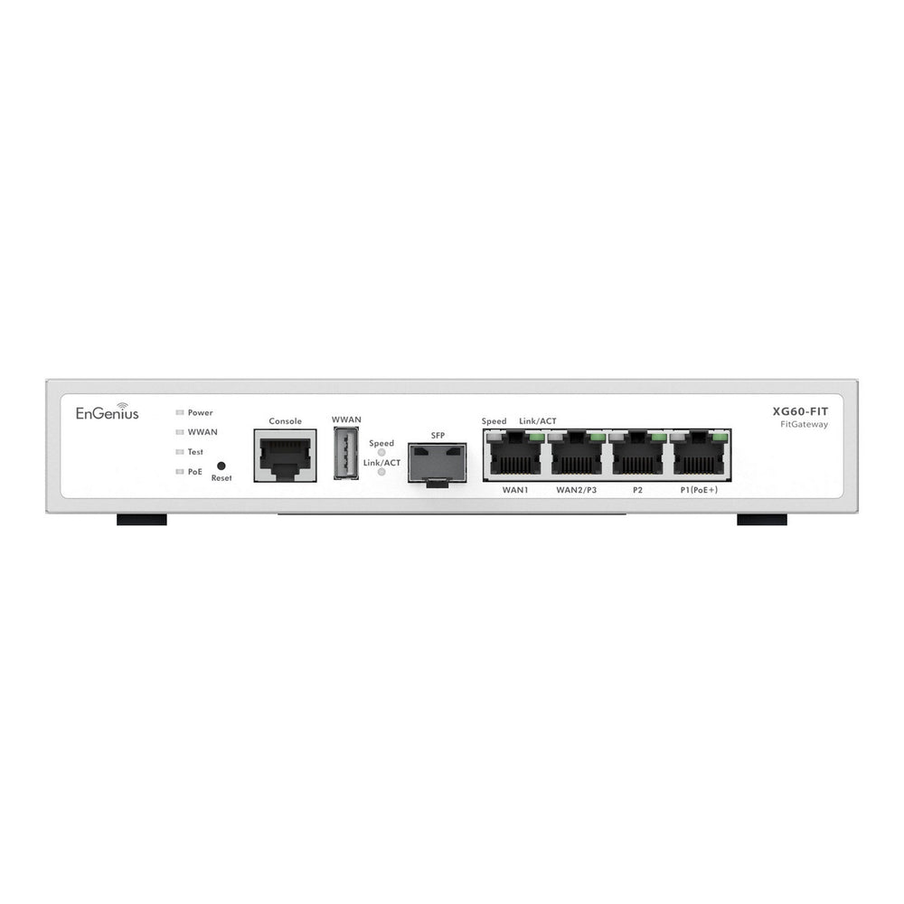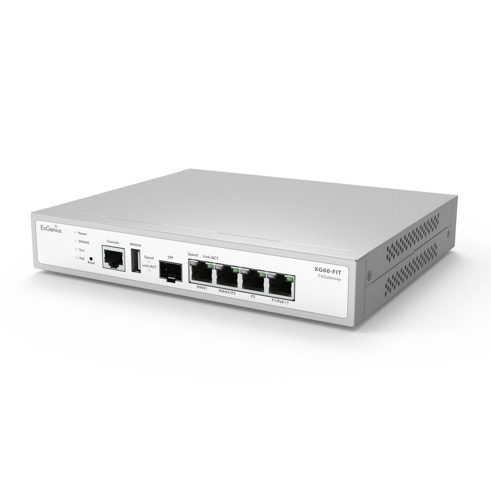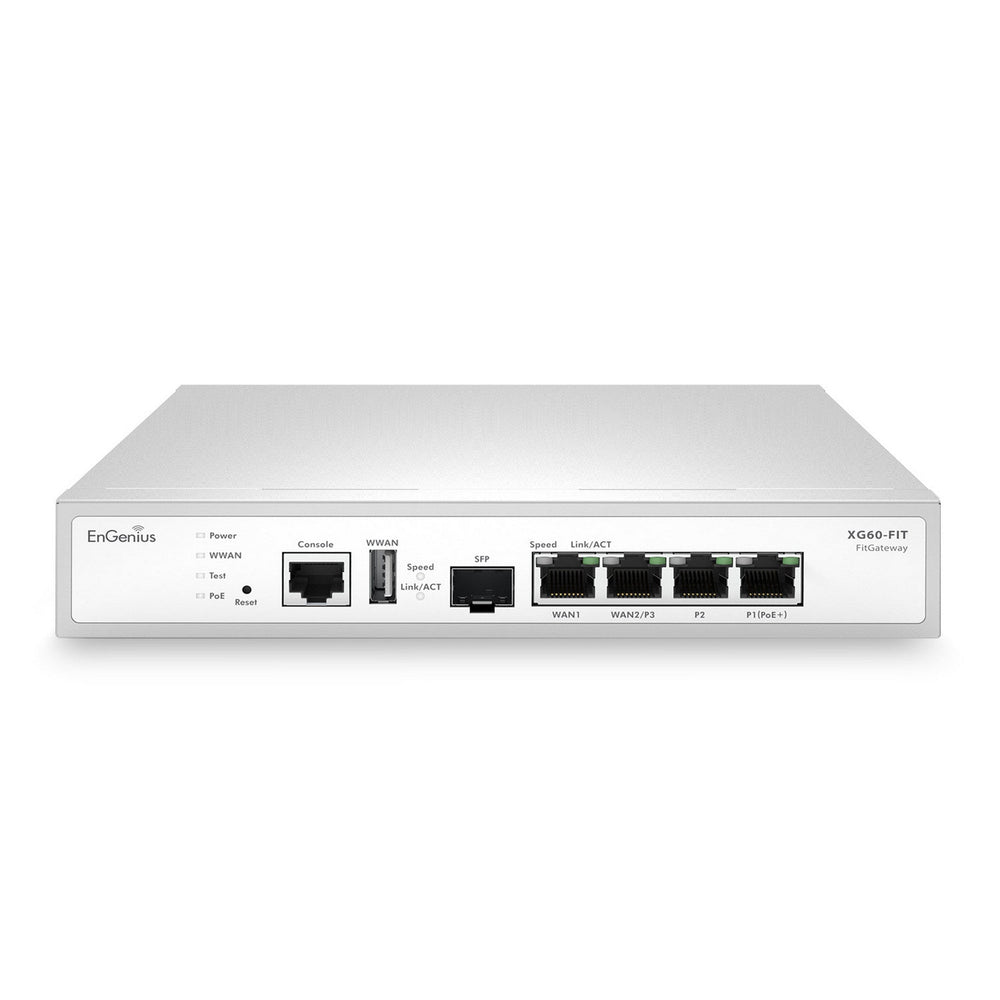 The EnGenius FitXpress XG60-FIT 4-Port Gig PoE+ Dual-Core 2.1GHz Gateway is designed to provide secure and dependable networking solutions for small businesses. With its stateful firewall, auto-VPN, and client VPN, it offers strong security measures. Additionally, the dual-WAN feature ensures uninterrupted connectivity through load balancing and WAN/cellular failover. The FitXpress management solution further enhances efficiency by simplifying implementation and management processes for chain stores, small offices, and branch offices.