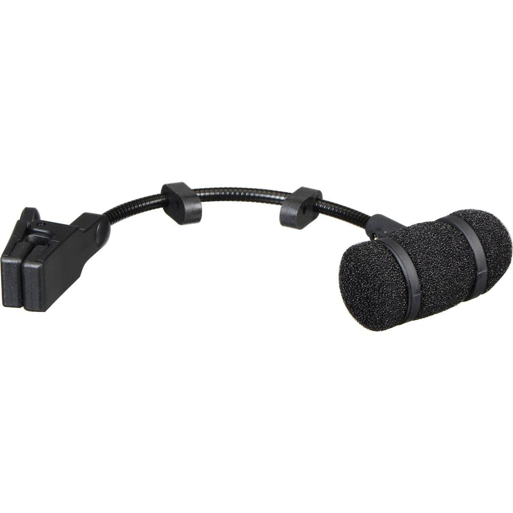- Rubber-grip spring clamp holds mic securely to instrument without marring the finish