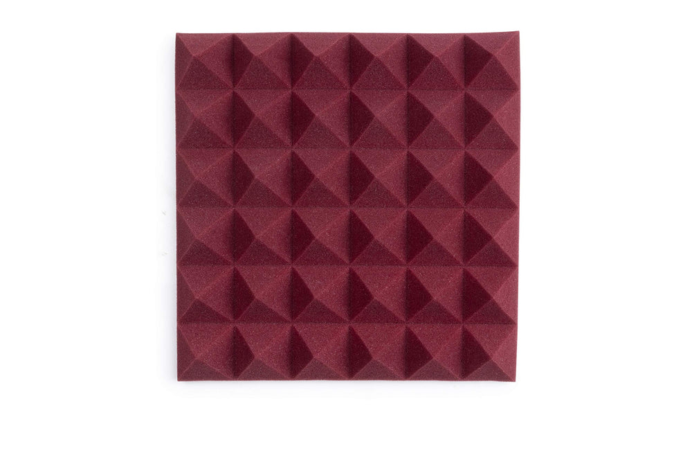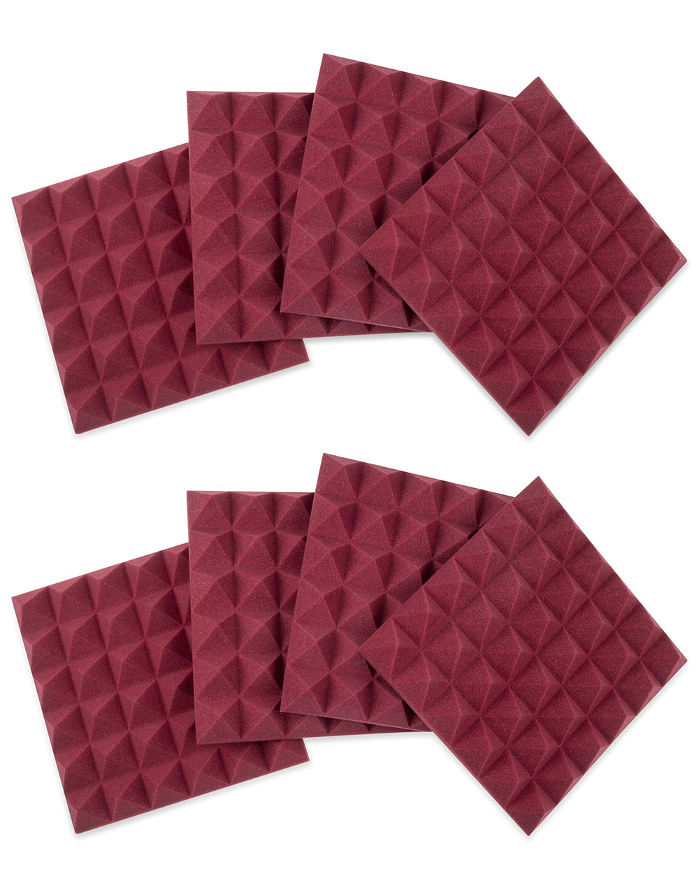 • Eight (8) Pack of 2”-Thick Acoustic Foam Pyramid Panels 12”x12” Burgundy Color