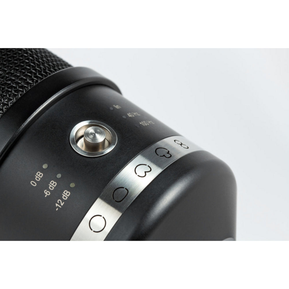 ○ Five switchable directional patterns: omnidirectional, wide cardioid, cardioid, hypercardioid, figure-8