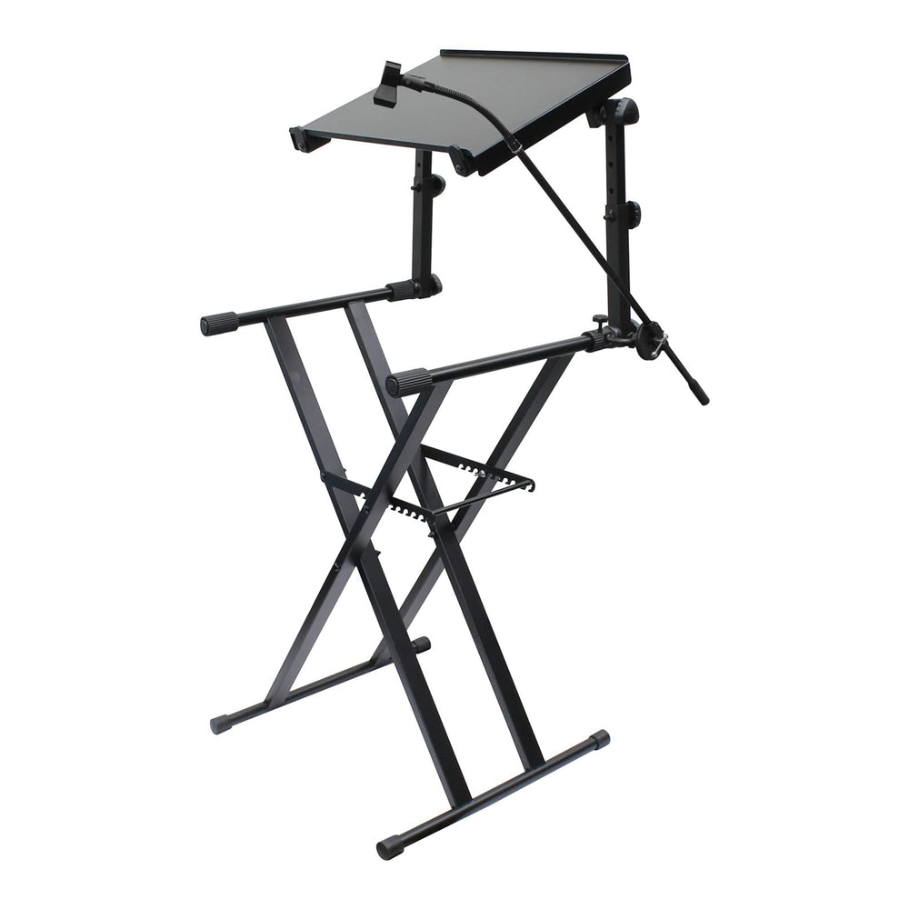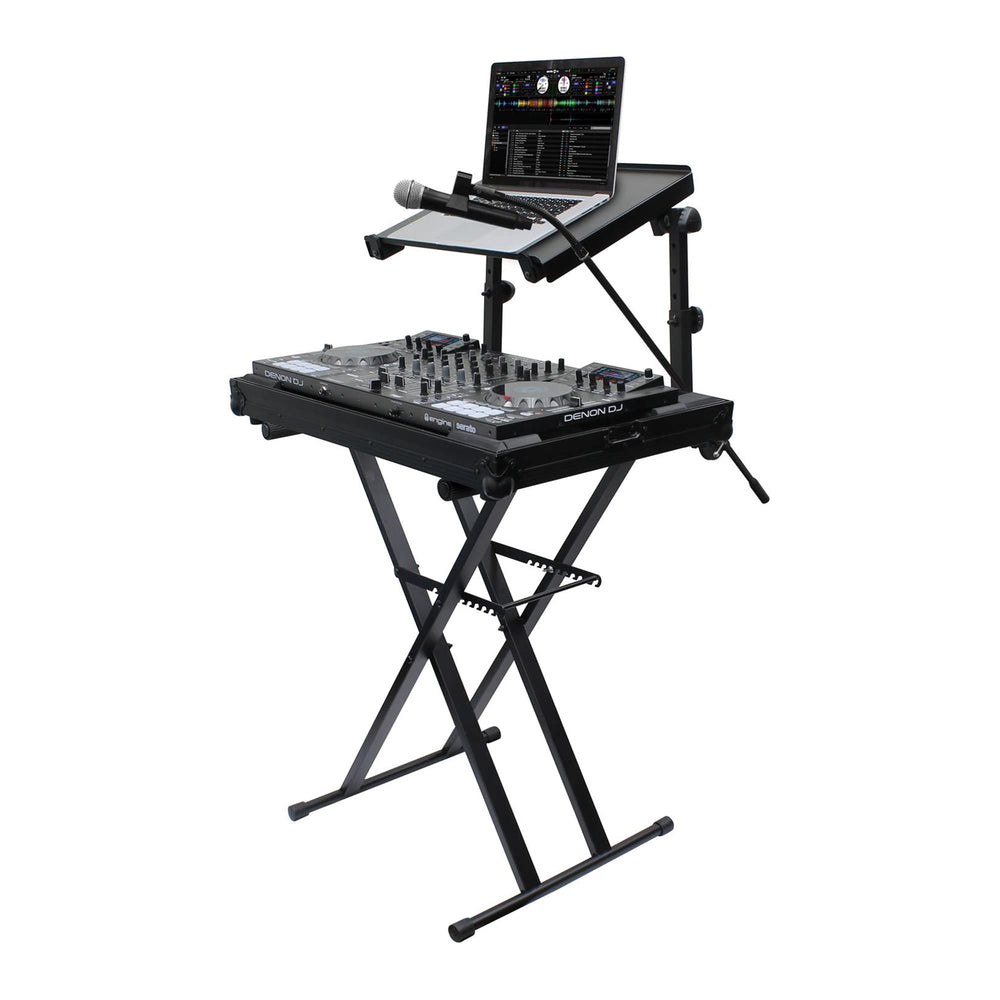 The LTBXS2MTCP, X-STAND COMBO PACK, features a two tier X-Stand with a removable 19" wide top shelf that allows you to use your laptop or other gear safely, securely, and conveniently over your mixing console controller system. In addition, also included is a matching color mic clip, 8" long goose neck, and 30" long boom arm. Fully assembled, it can all be easily attached to the stand and adjusted in seconds to the perfect angle for mic positioning. Designed for DJ controller setups that don’t require an extra heavy-duty support system, this X-Stand model with its steel/aluminum powder coated frame is built strong yet light for extra mobility. The X-STAND COMBO PACK includes (1) dual tier X-Stand, (1) mic boom with goose neck & mic clip, and (1) laptop/gear shelf. With all these 'X'tras that comes together with it, well, that's just one 'X'tra cool X-Stand system!