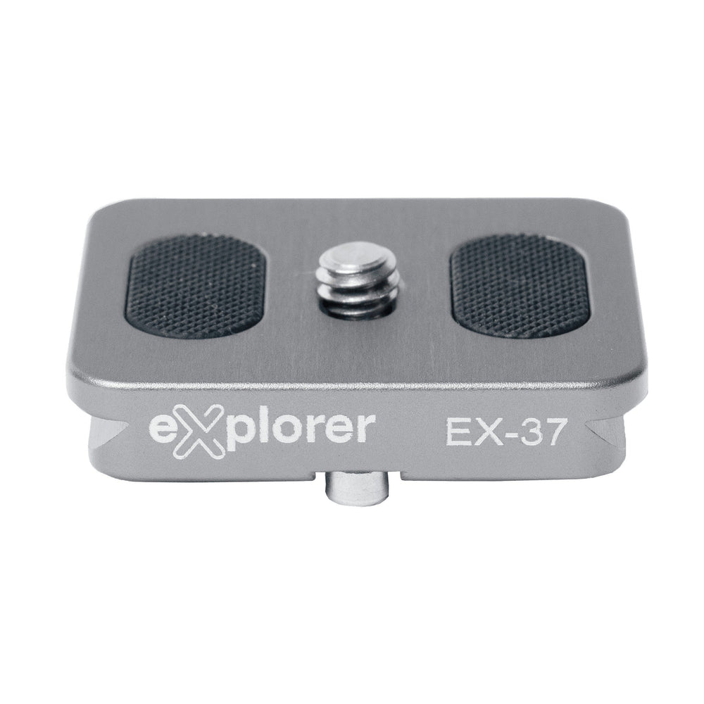 The Explorer EX-37 Quick Release Plate is a compact and lightweight, quick release plate designed for Explorer ball heads and other Arca-Swiss Style compatible heads/clamps. Suitable for smaller compact cameras, mirrorless cameras, small DSLR cameras, and accessories. The EX-37 features non-slip rubber traction Pads and has a 1/4-20 Mounting Screw. The Explorer EX-37 Quick Release Plate features dual safety stops to prevent the plate from accidentally sliding from compatible quick release clamps.