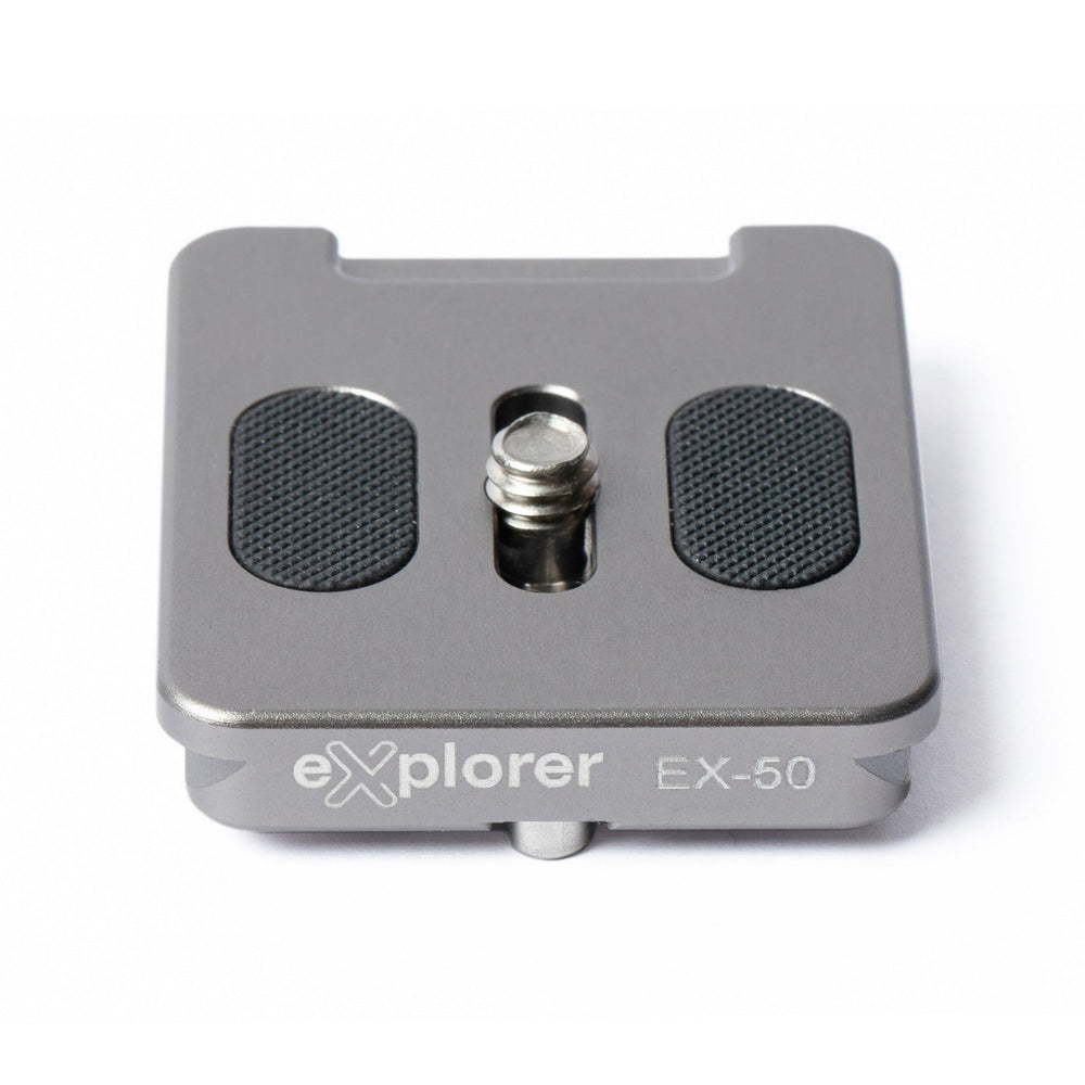 The Explorer EX-50 Quick Release Plate is a compact and lightweight, quick release plate designed for Explorer ball heads and other Arca-Swiss Style compatible heads/clamps. Suitable for mirrorless cameras, DSLR cameras, and accessories. The EX-50 features non-slip rubber traction Pads and has a 1/4-20 Mounting Screw. The Explorer EX-50 Quick Release Plate features dual safety stops to prevent the plate from accidentally sliding from compatible quick release clamps.