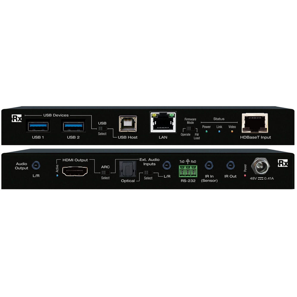 4K/18G HDBaseT Rx (100m) with USB, LAN, ARC, L/R Audio In, L/R Audio Output De-Embed, IR, RS-232 (Receiver Only)
