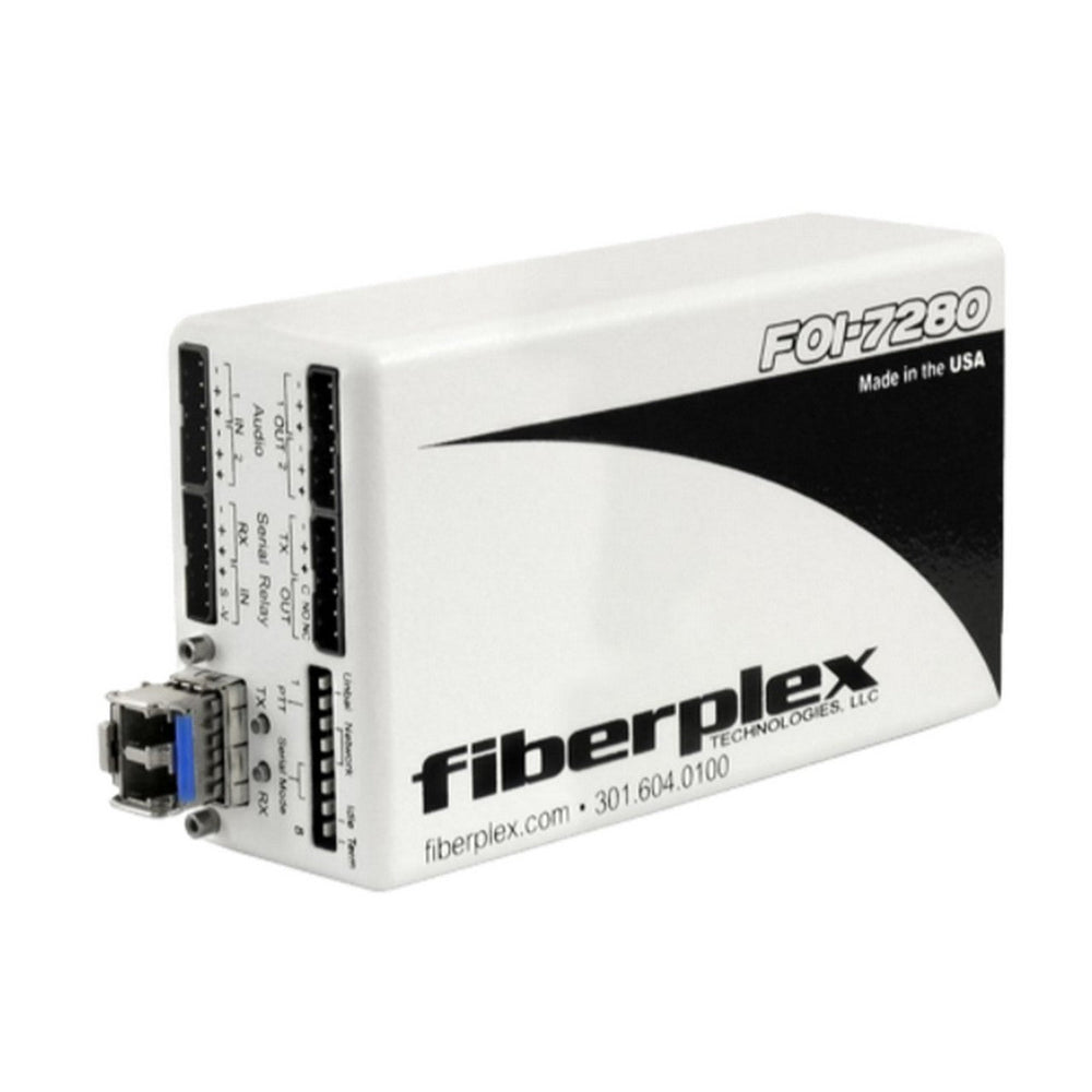Elegantly simple yet packed with an advanced feature set, the FiberPlex Technologies, FOI(TD)-7280 is a powerful problem solver when it comes to routing audio. The unit converts line level, stereo analog audio to fiber for long or short haul transport. In addition to the audio, a multi-format serial data connection and a bidirectional pair of contact closures are included.