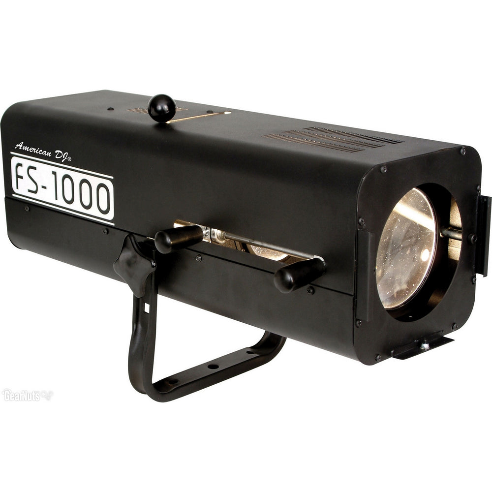 The American DJ FS-1000/SYS is the FS-1000 and the LTS-5 tri-pod stand. The American DJ FS-1000 is a high-powered, affordable followspot. It uses a new specially designed reflector that produces the same or more light output as a 1,000W lamp. It uses a bright 575W halogen lamp