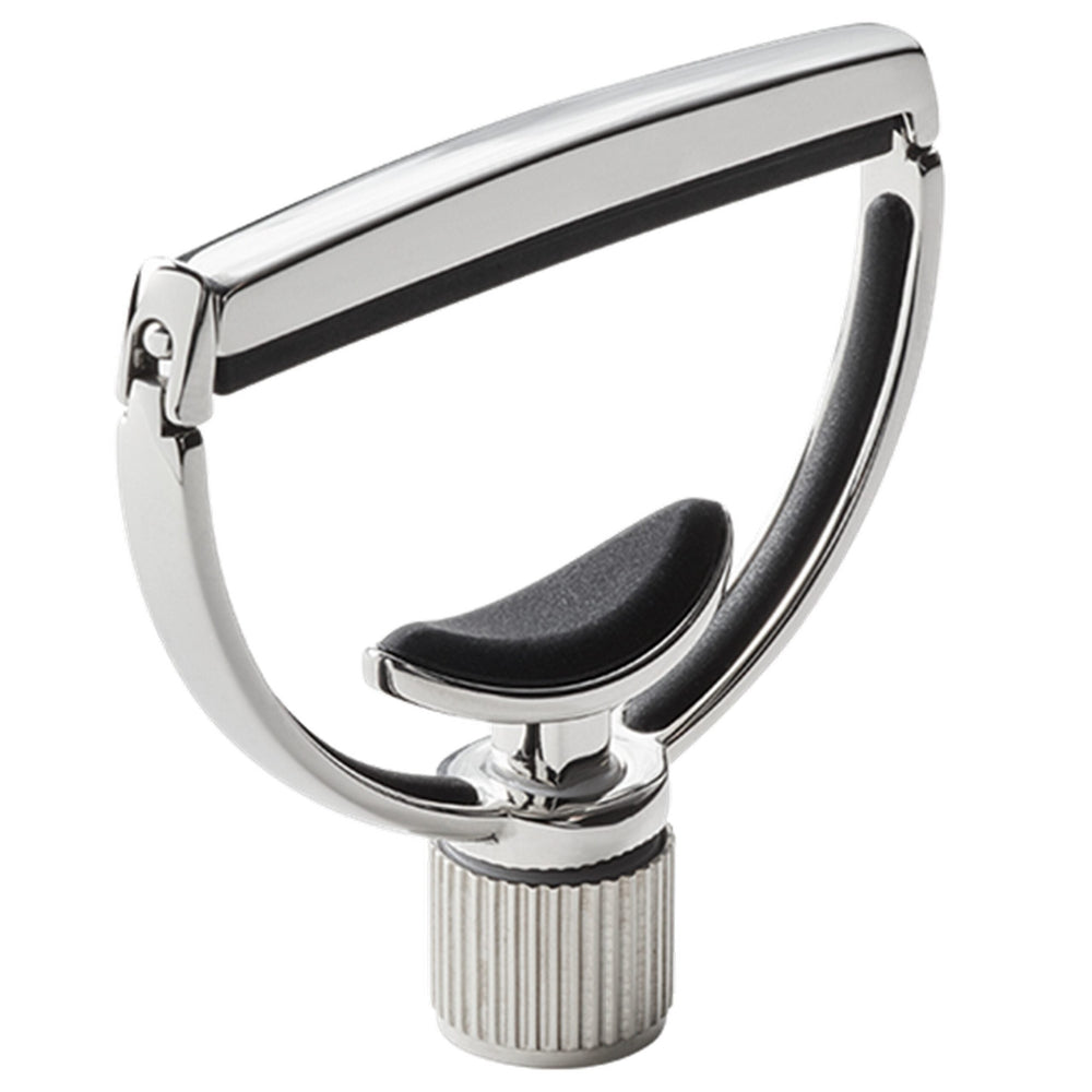 - A traditional yoke-style guitar capo that you can store behind the nut on your instrument between songs, designed to look subtle yet beautiful when on your guitar