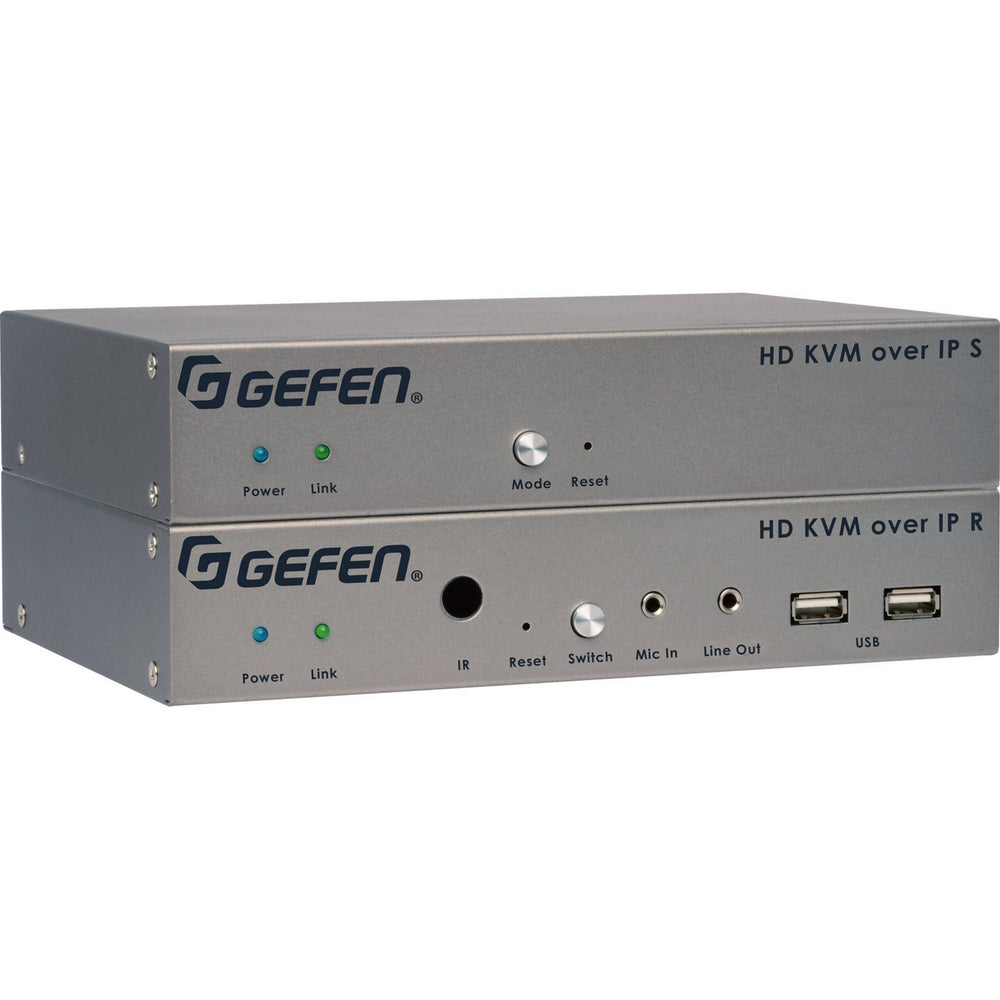 The Gefen HD KVM over IP extends HDMI, USB, 2-way analog audio, RS-232, and IR, over a Gigabit Local Area Network. Resolutions up to 1080p Full HD and 1920 x 1200 (WUXGA) are supported. The Senders and Receivers can be automatically or manually configured to unique IP addresses to allow the connection of multiple units to the same network. Multiple Receiver units can simultaneously connect to any Sender unit within the network including the Gefen KVM over LAN products with HDMI, DVI, or VGA video, to create a virtual crosspoint matrix of just over 65,000 Sender and Receiver units total, depending on the network bandwidth and number of ports on the network switch (see Note) When using HDCP-encrypted content, only HDMI Senders and Receiver units can accept and display the content. Each Receiver unit has a built-in Ethernet switch and two additional RJ-45 Ethernet ports to allow for the connection of computers and other IP-enabled devices. USB 2.0 data rates up to 480 Mbps are supported in addition to backward-compatibility with USB 1.1.
