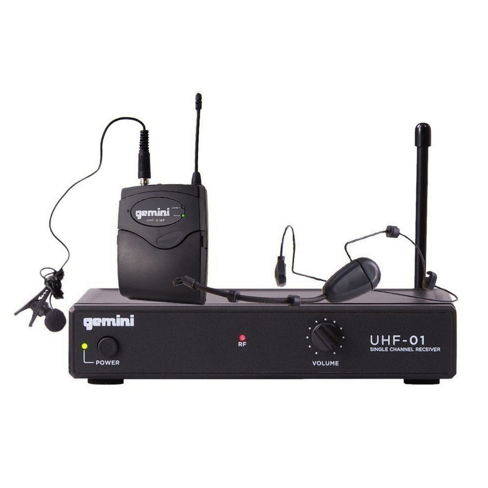 Gemini UHF-01HL Headset Lavalier Wireless Microphone System, F1 Band