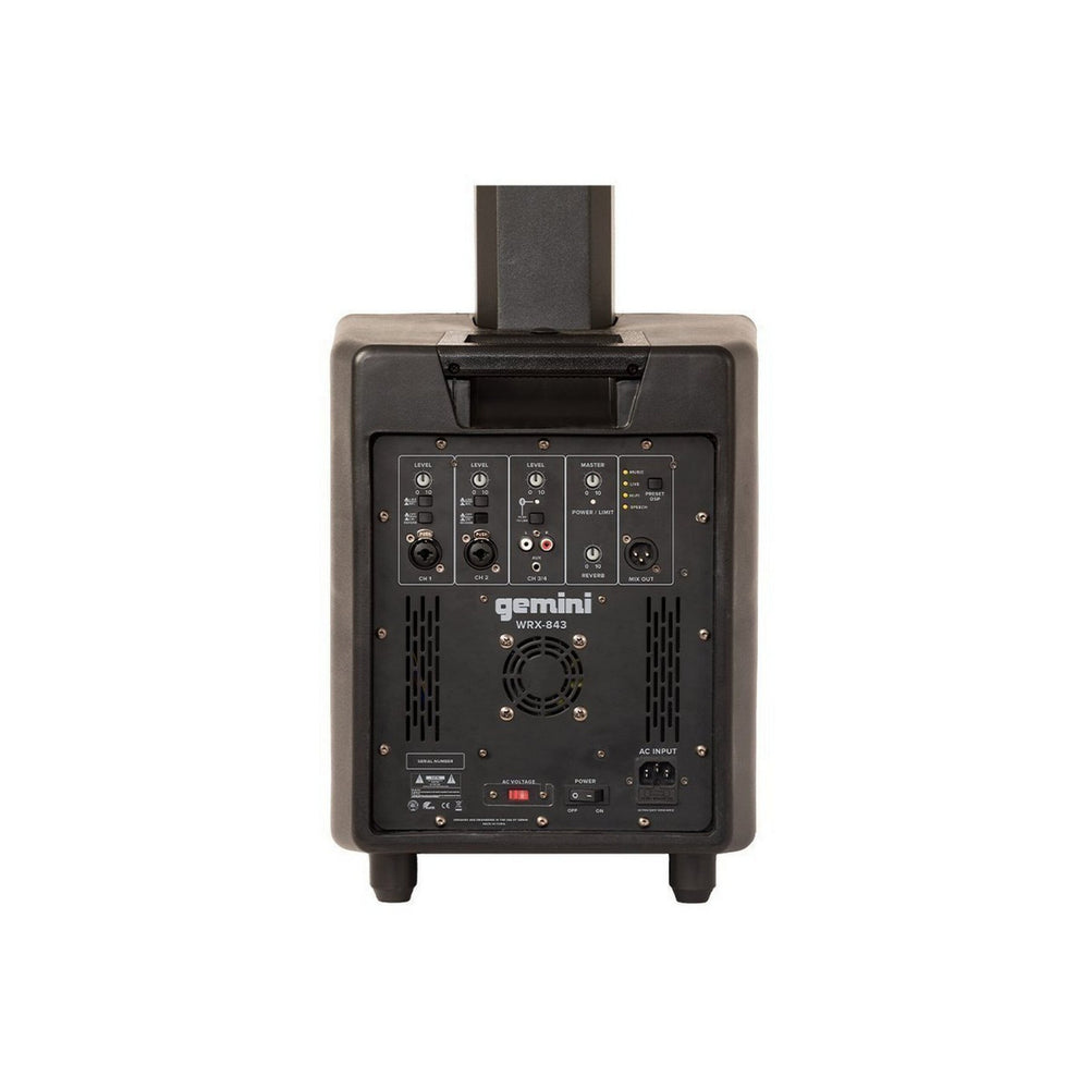 This sleek, lightweight column array PA system boasts room-filling sound in a compact, highly portable package. The Gemini WRX-843 is packed to deliver rich sound for professionals needing a transportable audio system. This speaker system makes its presence felt with its towering 78ā height, 3,000 watts of room-filling peak power, and 600 watts of continuous Class D digital amplifier. The WRX-843 weighs only 24 lbs. and is perfect for mobile DJs and other entertainers on the go. Thanks to a wide array of I/O options and onboard controls, the WRX-843 is a highly flexible PA system that quickly adapts to a variety of applications.