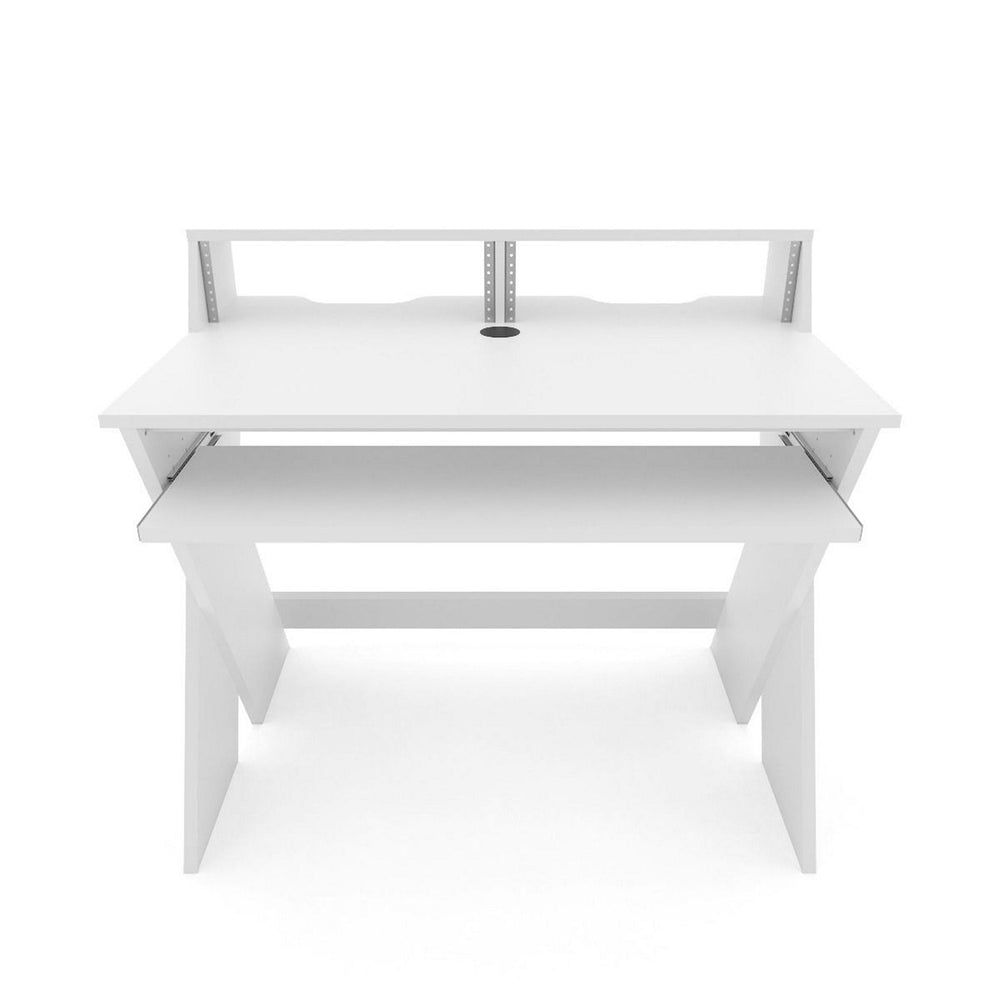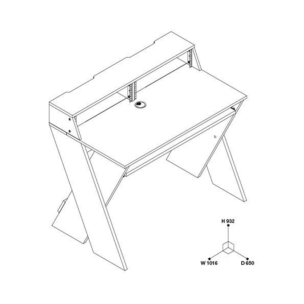 - Provides ample space for setting up a laptop/computer, screen, studio monitors, audio interface, 19" rack-mount equipment, MIDI controllers, synths, and a master keyboard