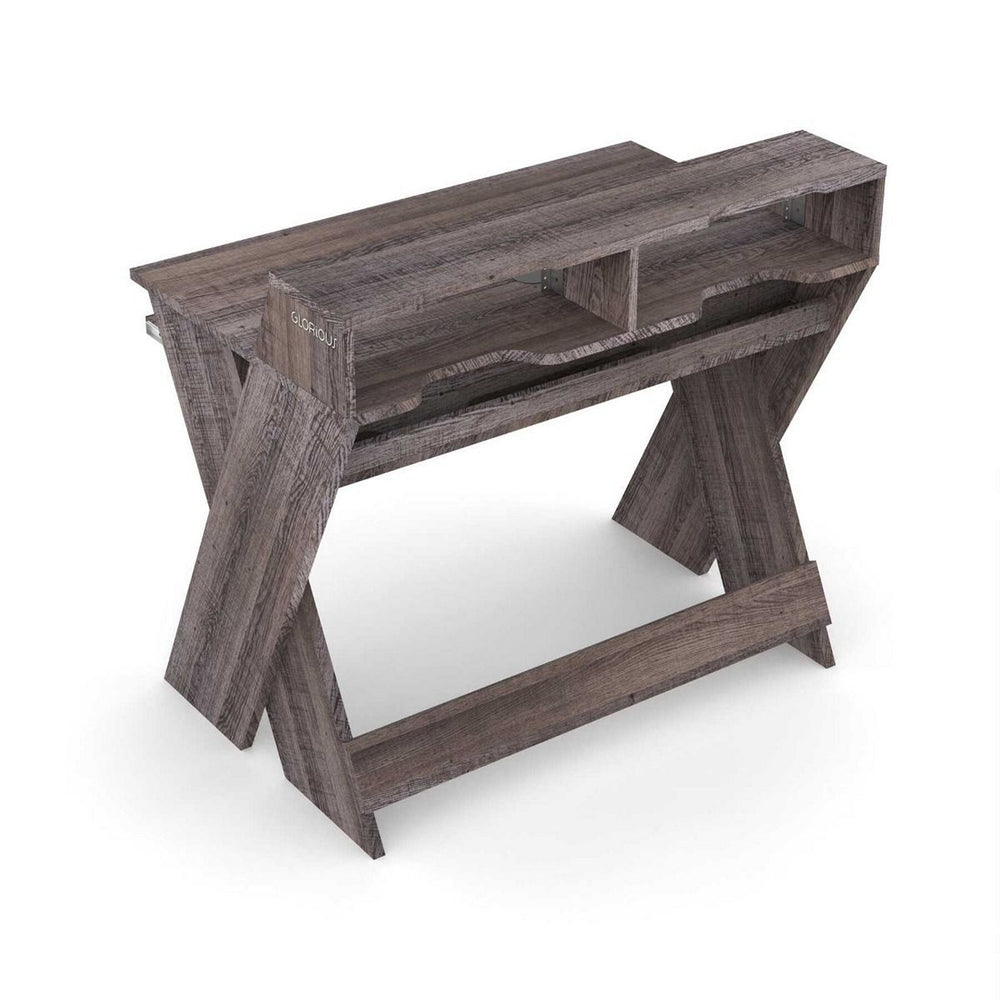 The X-shaped design of the Sound Desk Compact, along with additional bracing, ensures remarkable stability. The studio workstation's stylish wood finish highlights its high-quality construction.