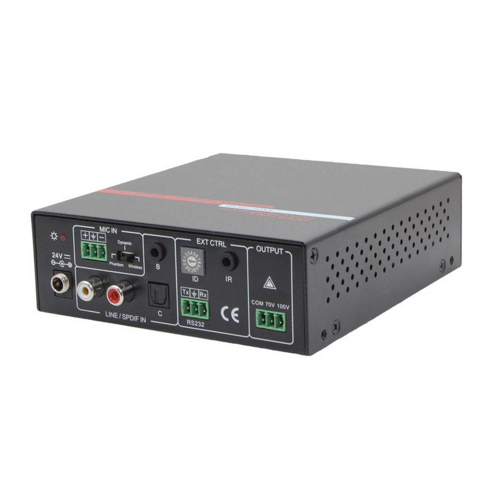 The AMP-7040 is a compact, economical and energy-efficient (Class D) stereo to mono audio amplifier at 70 V or 100 V with 3 inputs (2 line in and 1 balanced microphone). The Versatile design is compatible with dynamic, condenser or wireless microphones with fully adjustable control options including RS-232, IR, and front panel buttons. Functions include EQ control and microphone mixer. The AMP-7040 is a perfect for classrooms, meeting rooms, boardrooms, sports bars and more.