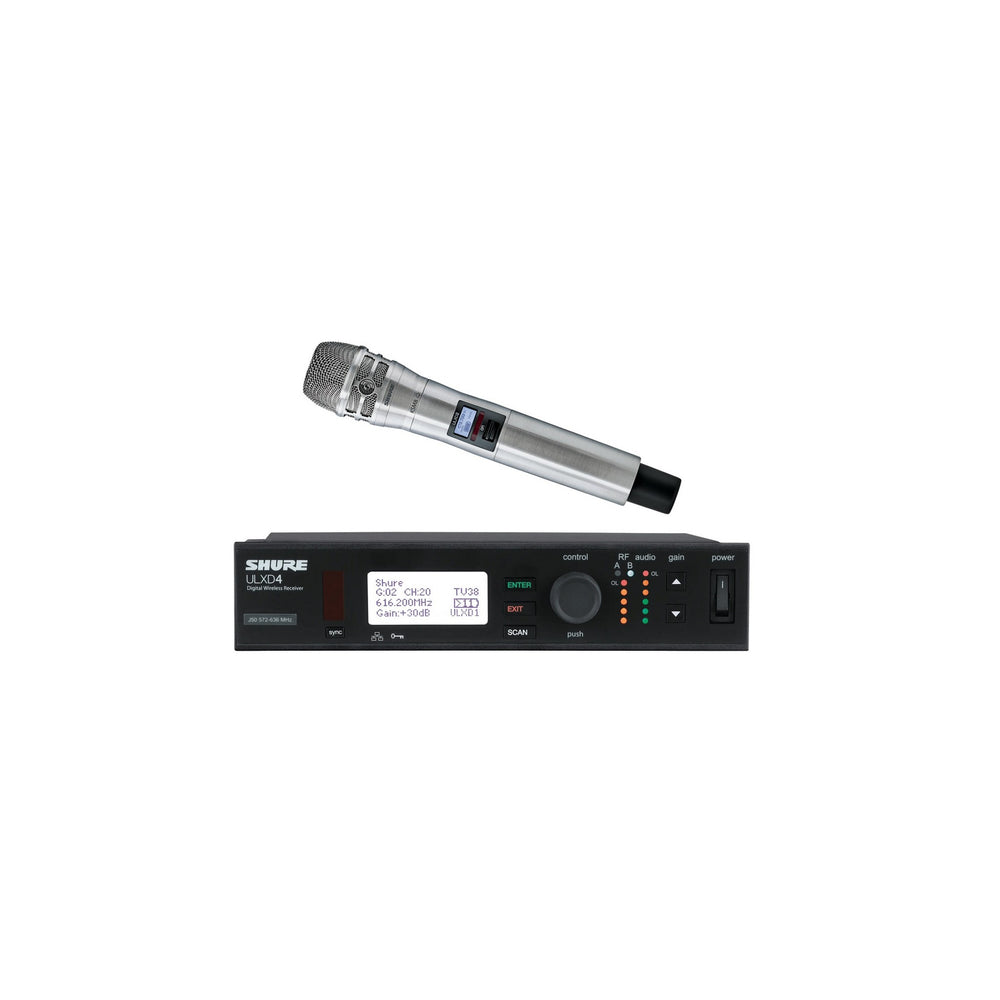 The Shure ULXD24/K8 Handheld Wireless Microphone System, H50 534-598 MHz, is the pinnacle of audio technology, designed for professionals who demand nothing but the best in sound reinforcement. This sophisticated system includes the ULXD2/K8B Handheld Wireless Microphone Transmitter and the ULXD4 half-rack networkable wireless receiver, ensuring top-tier performance. Whether you're performing on stage, in a house of worship, or presenting in a corporate environment, the Shure ULXD24/K8 delivers unparalleled audio clarity and reliability.