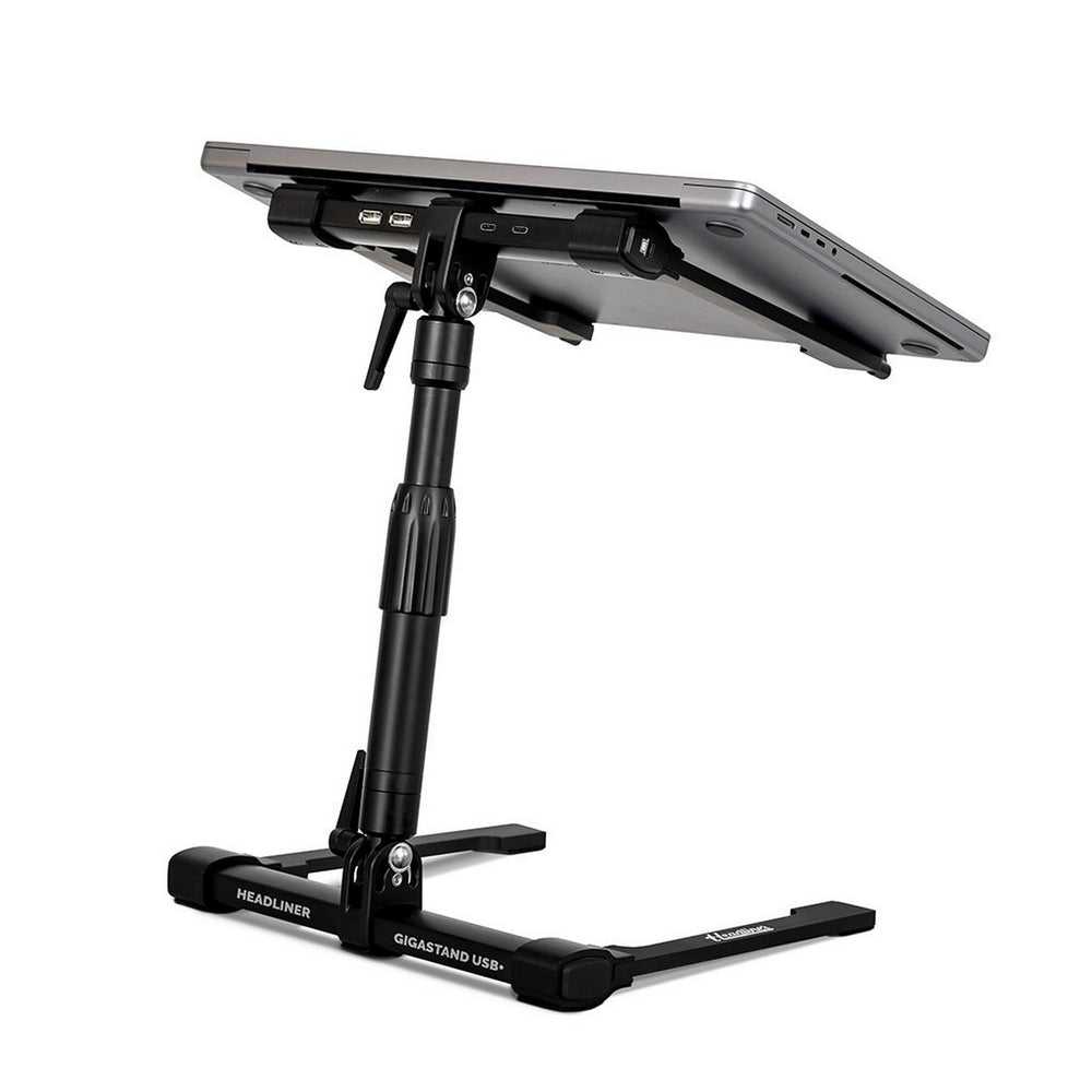 The Headliner Gigastand for Small DJ Controllers and Laptops, and the Headliner Gigastand for Small DJ Controllers and Laptops USB+, are ideal solutions for DJs, musicians, performers, and creators who require their laptop or device to be positioned at the perfect height and angle.