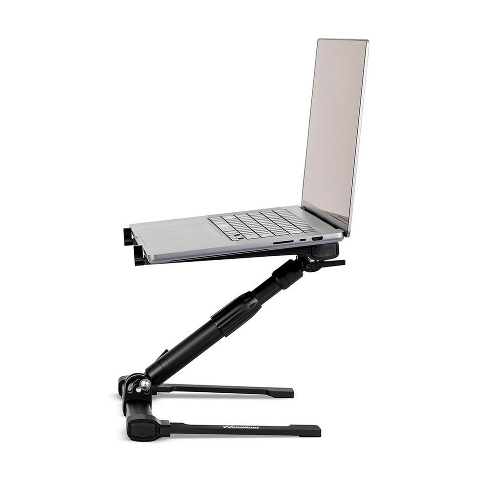 The Headliner Gigastand for Small DJ Controllers and Laptops is a fully-adjustable laptop stand designed to elevate the creative setup of DJs, musicians, performers, and creators. Built with portability and performance in mind, the Headliner Gigastand for Small DJ Controllers and Laptops boasts a telescoping neck that rotates 360 degrees and an intuitive lever system for easy angle adjustments. This adjustable laptop stand folds flat for convenient transport and is constructed with a durable steel and aluminum frame to ensure long-lasting use.