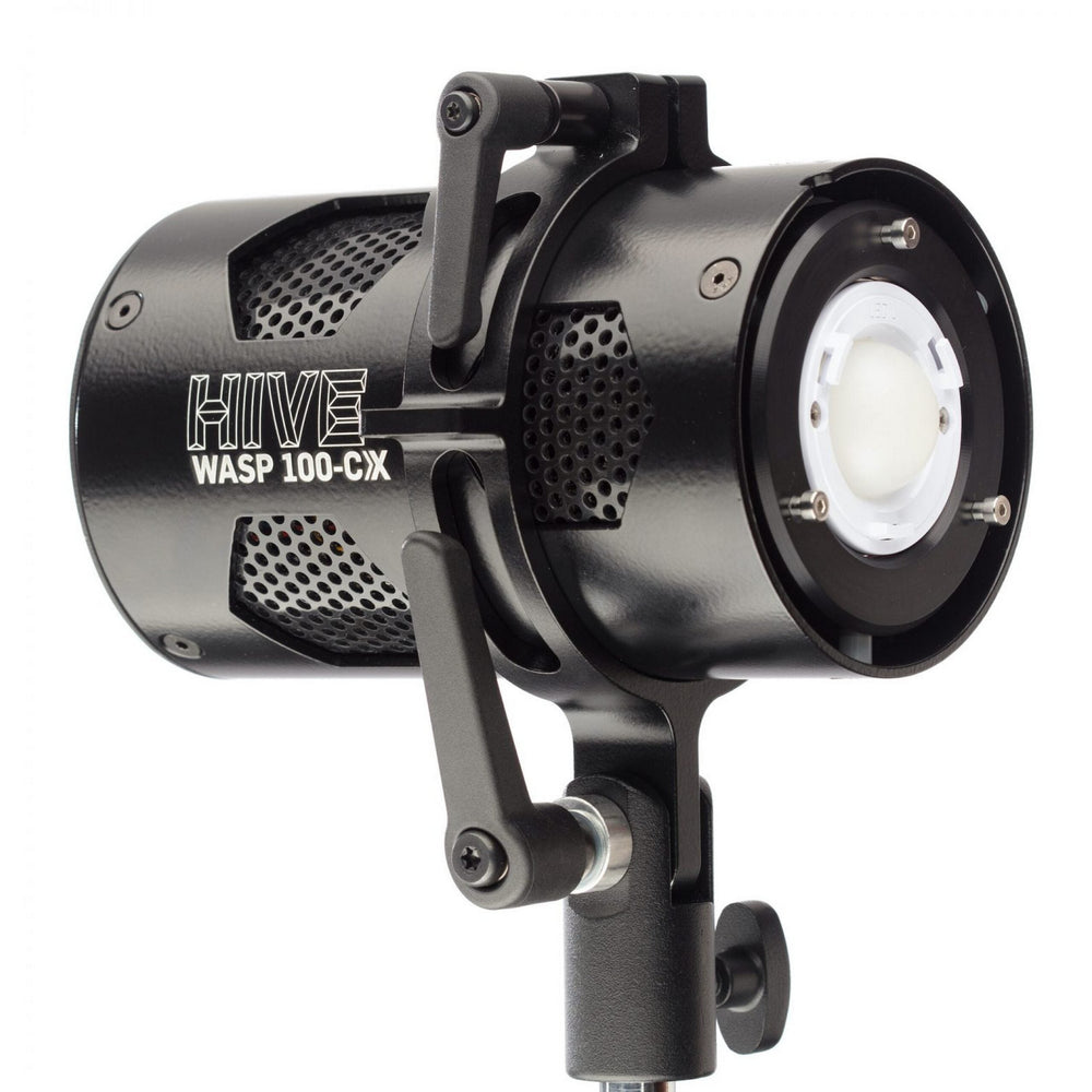 Using only 75 watts to create 320FC at 5ft/1.5M (F14 at 800ISO), the Wasp 100-CX utilizes Hive’s proprietary Omni-Color array. The 100-CX is compatible with all Hive C-Series and Profoto modifiers and features a new enhanced Bluetooth range in the same premium aerospace-grade aluminum body as all C-Series products.