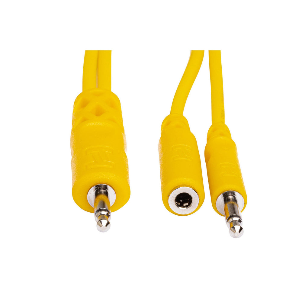The Hosa Hopscotch Patch Cables with Pigtail Mono Mini Jack are ideal for musicians and sound designers who utilize modular synthesizers and Eurorack systems equipped with 3.5mm mono mini jacks. The innovative pigtail design empowers users to swiftly reroute a signal to a different destination without disrupting their current patch configuration. This proves to be an invaluable asset for meticulously crafted patches, as well as improvised experimentation during live performances.