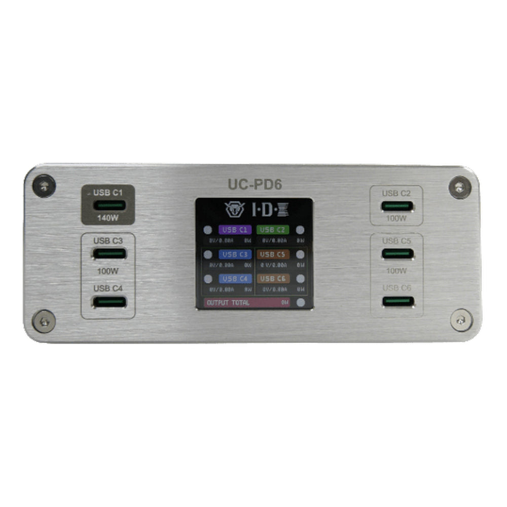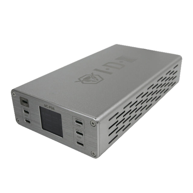 With a fanless design and integrated heat dissipation, the UC-PD6 operates quietly while maintaining safe thermal performance. Its compact aluminum chassis and LCD status display make it ideal for studio, on-location, and travel charging applications.