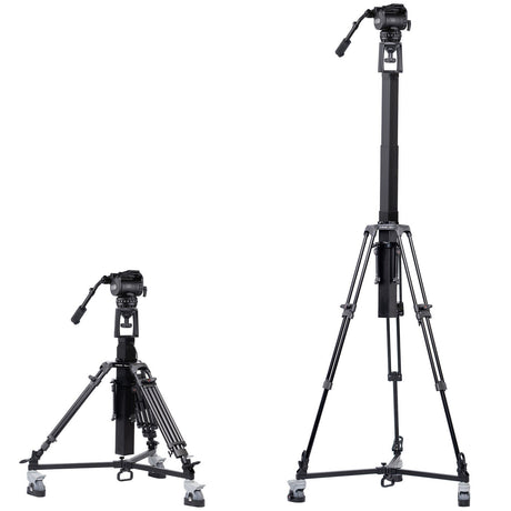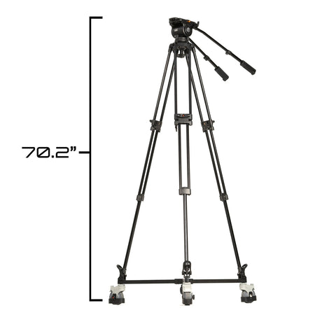 Ikan EG780A2D 2-Stage Aluminum Fluid Head Tripod Kit with Dolly and Adjustable Drag<
