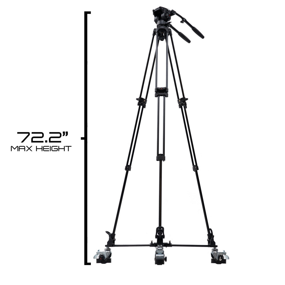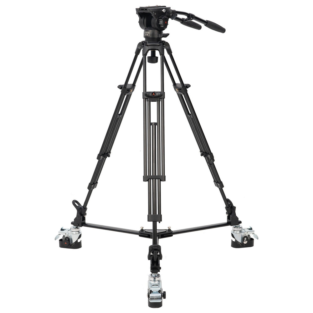 Ikan EG780A2D 2-Stage Aluminum Fluid Head Tripod Kit with Dolly and Adjustable Drag