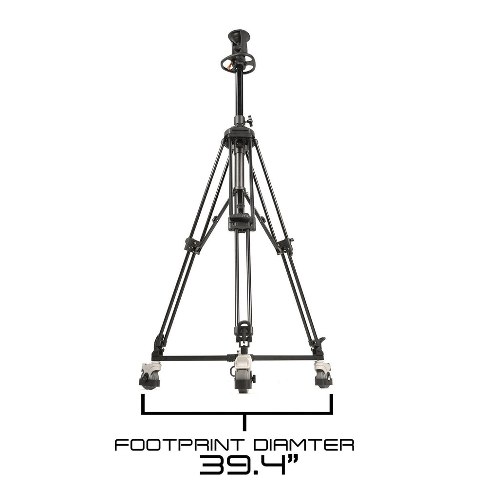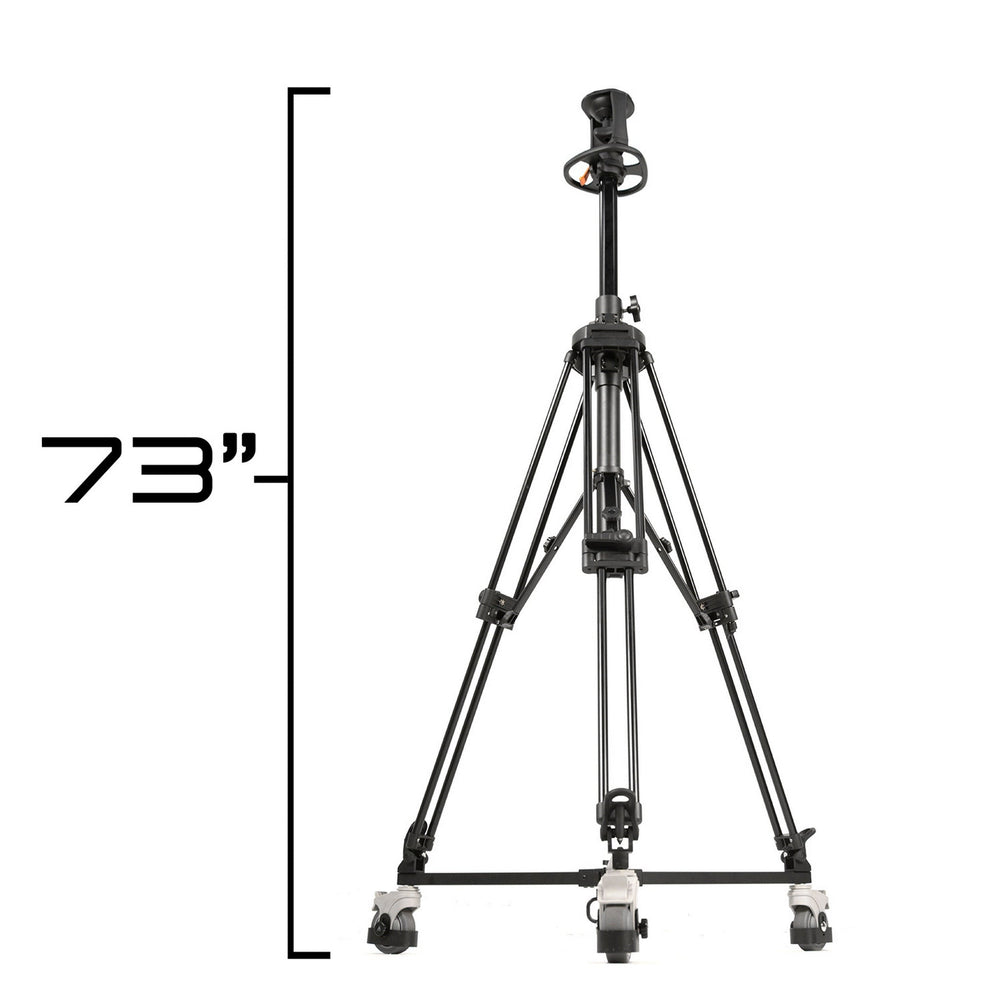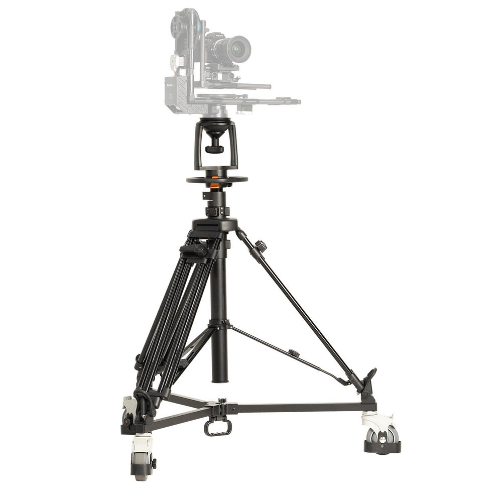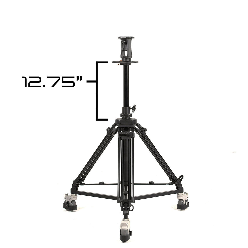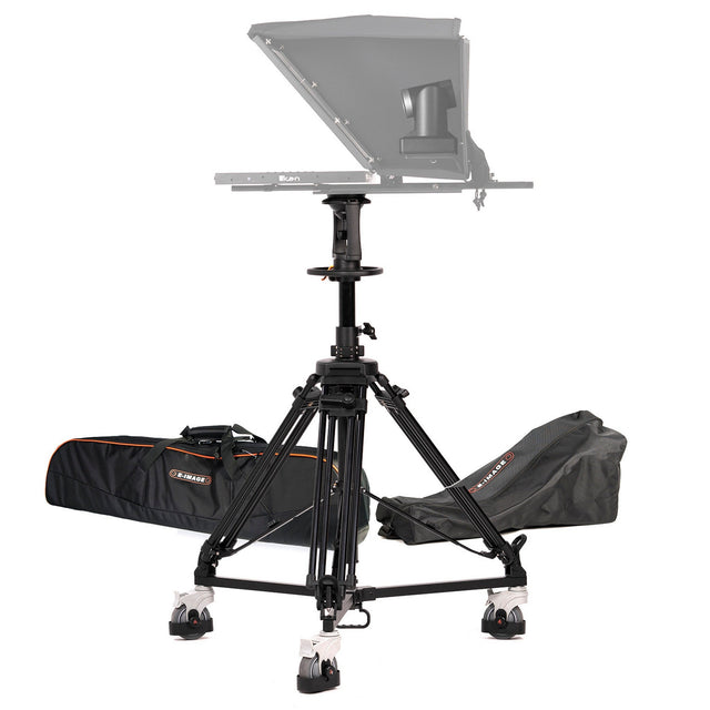 For fast repositioning, the included EI-7004B dolly features locking rubber wheels and height adjustable cable guards. The dolly is designed to fold for transport and is paired with dedicated carrying bags for the pedestal and dolly components. This pedestal kit is ideal for studio and broadcast workflows that require mobility, stability, and controlled height adjustment.