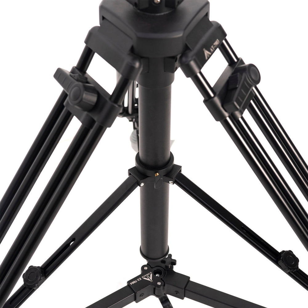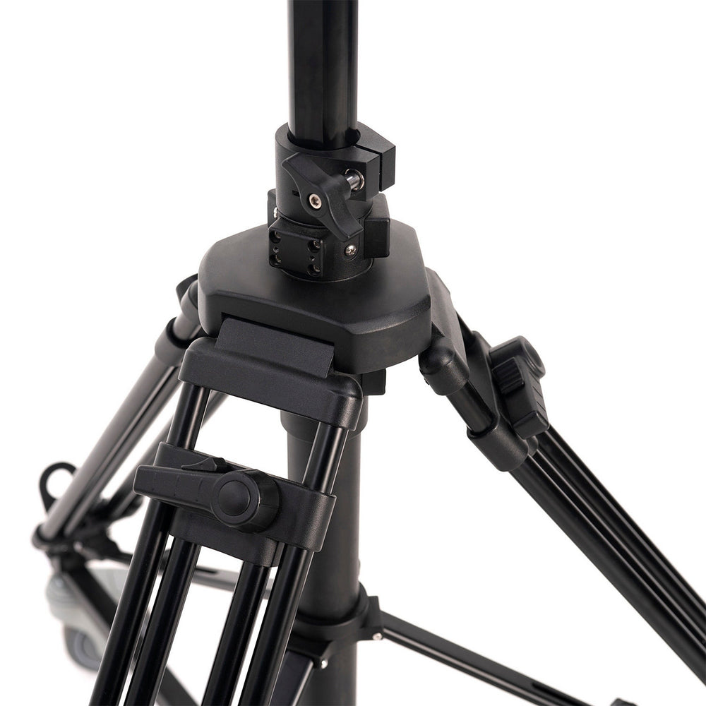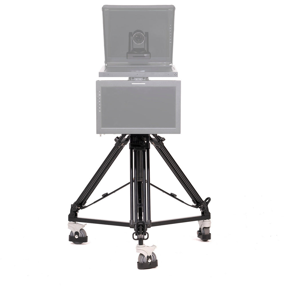 The pneumatic column uses an easy adjust lever to provide an on shot stroke for live height changes during production. The included 100mm flat base is designed for mounting PTZ teleprompter systems or robotic PTZ heads and includes a 3/8 inch 16 mounting screw. The system also includes an adjustable mid level spreader to add stability to the center column.