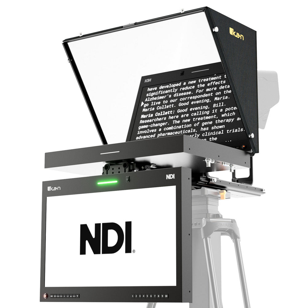 Ikan Aura 19-Inch POE++ NDI Teleprompter, NDI Talent Monitor with Full NDI Encoding/Decoding, and IP Tally Light